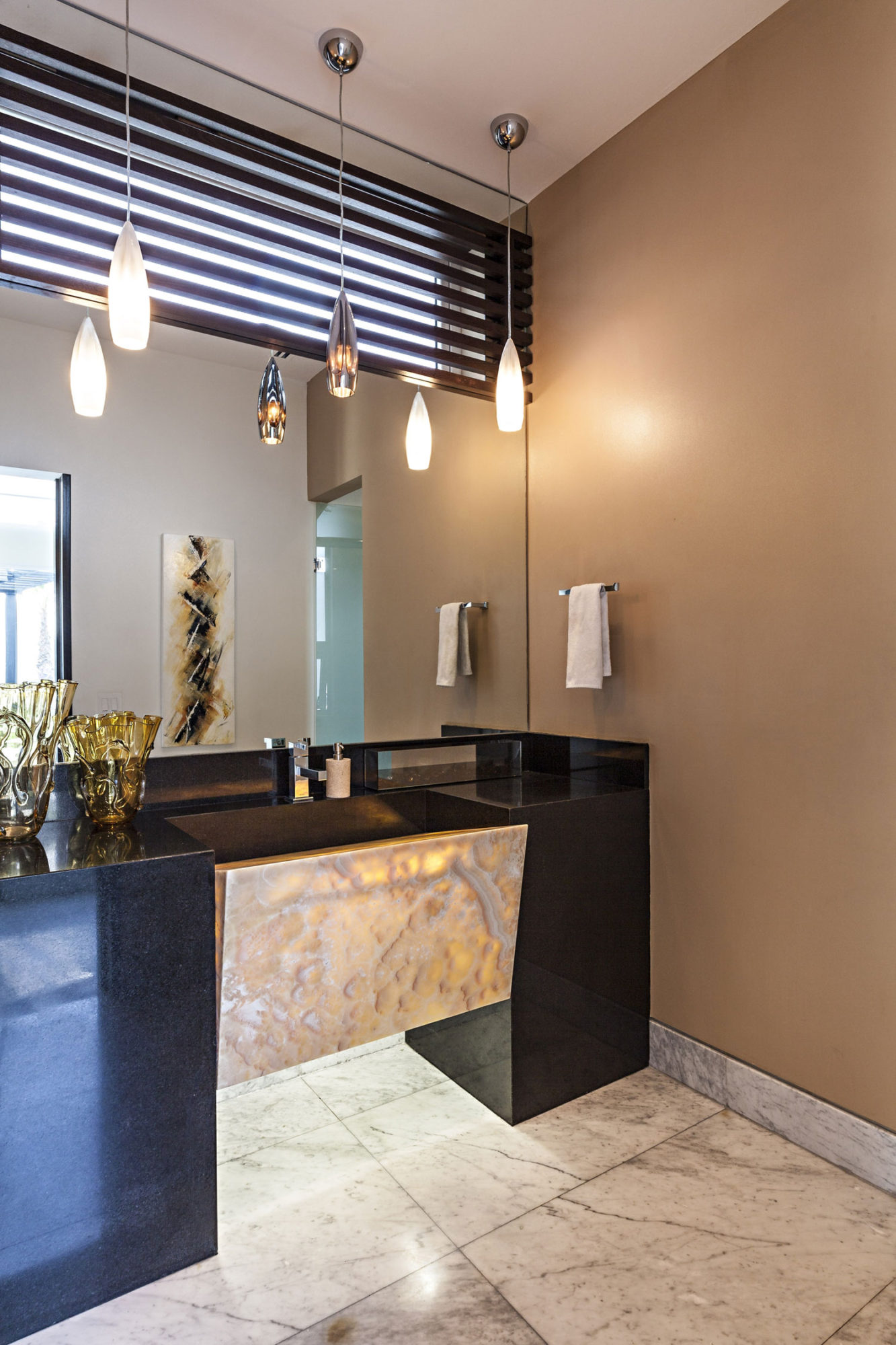 From an exterior point of view, the home is a perfect example of modern architecture, boasting crisp, white walls complemented by dark brown textures. On the inside, we find a very welcoming environment that oozes comfort and opulence at each and every turn. Amenities include large flat screen TVs, comfortable seating arrangements, high-end appliances and impressive lighting arrangements, but the surprises don’t end here!