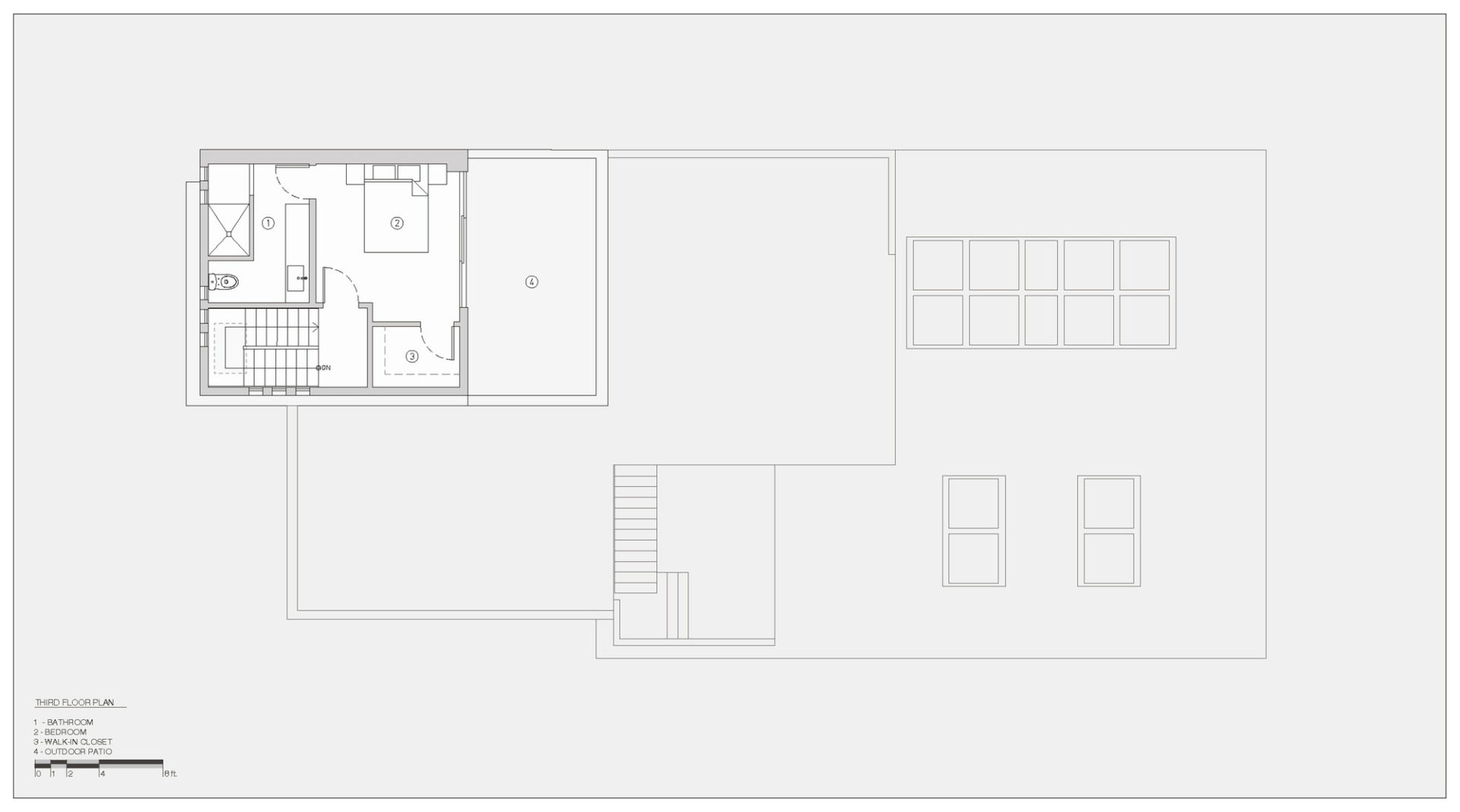 To accommodate large-scale events, the public zone consists of an open plan kitchen and dining room, living room, interior courtyard and a double height performance area, located in the heart of the building. The individual spaces all look upon each other in multiple ways, offering the building a reflexive quality. Depending on how these spaces are utilized, the home feels equally suited for one person or one hundred.