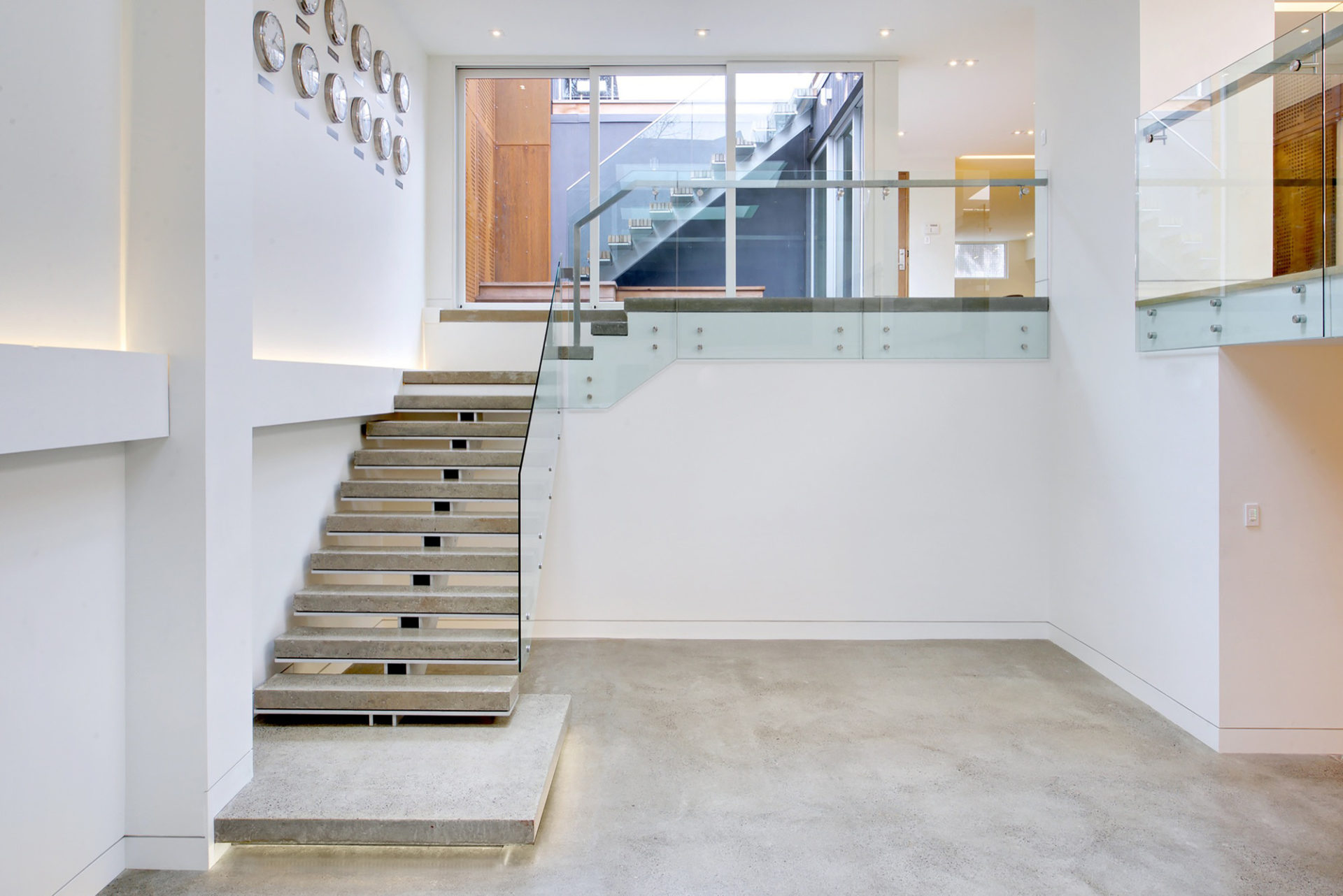 The primary living areas are focused around an interior courtyard that receives plenty of natural illumination via skylights. The social spaces comprise an open plan dining room, kitchen and living room as well as a performance area. The house retains a link to its former self through a Corten steel light feature placed above the former cold storage room. The light penetrating a series of perforations reveals the shape of large tulips that honor Cruikshank’s reputation for retailing high quality tulip bulbs.