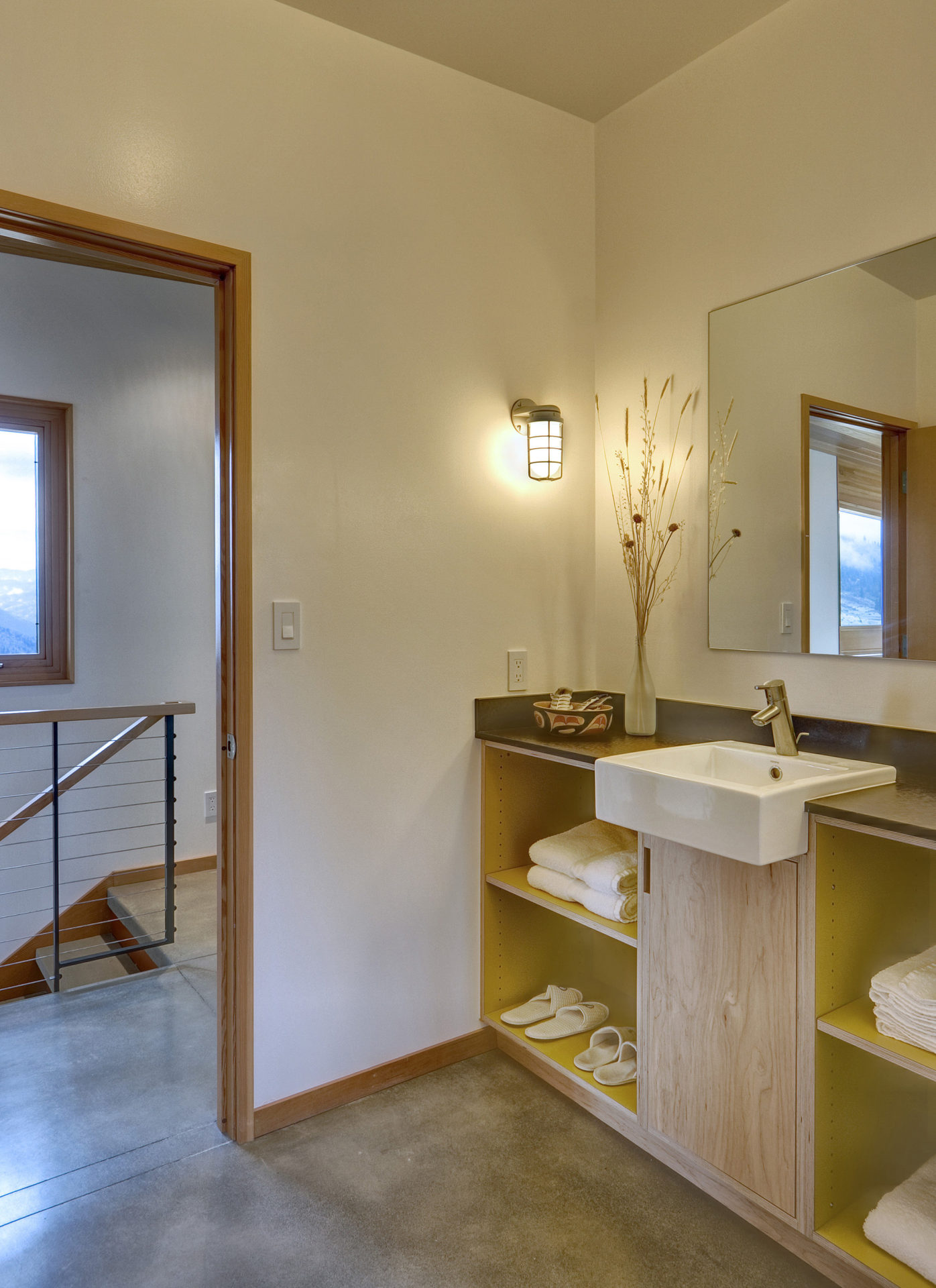 The Nahahum residence was constructed in 2009 by Balance Associates at a scenic location in Cashmere, Washington, USA. It features 1,650 square feet of living space and rises on two stories in order to provide the most exquisite views of the environment. The entryway is a double-height space that flaunts full height glazing on its north and south walls.