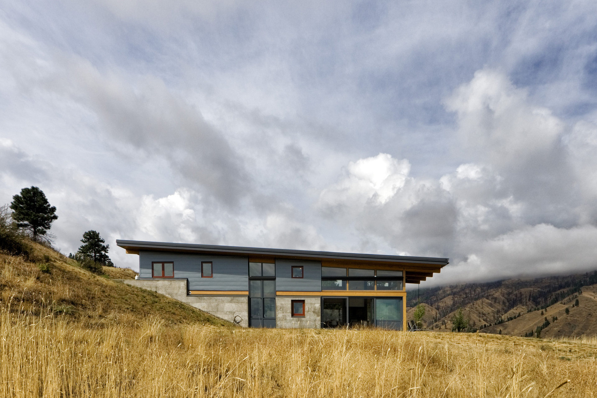 Located north of Cashmere, Washington, in the Nahahum Canyon, this 1650 square foot two story dwelling is set into the hillside with concrete retaining walls that guide the form of the cabin.