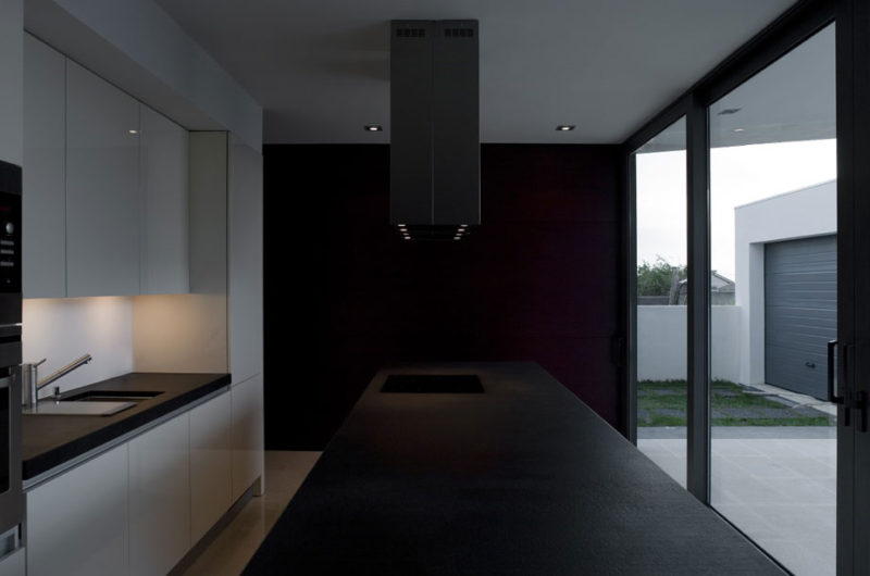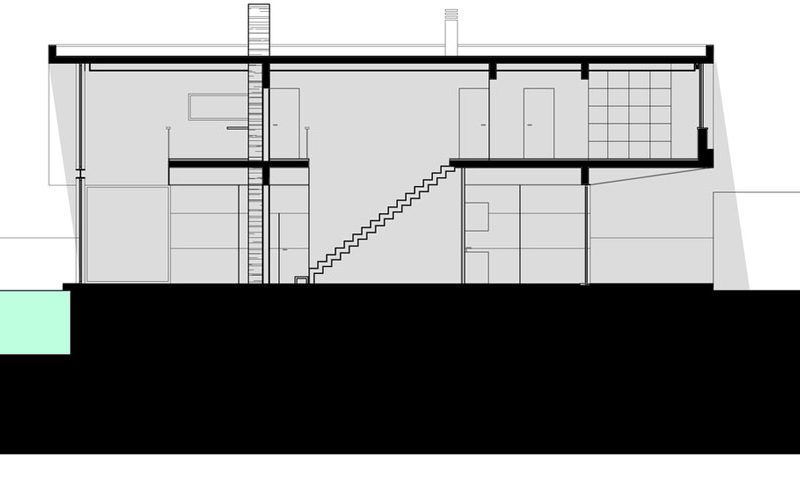To reduce energy consumption, the house features passive cooling and heating systems, and plenty of natural lighting opportunities. It flaunts huge windows which play an essential role in connecting the lower level with the garden. The lower level is where the public and social spaces are located, while the more private areas can be found on the upper floor.
