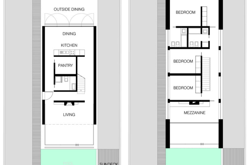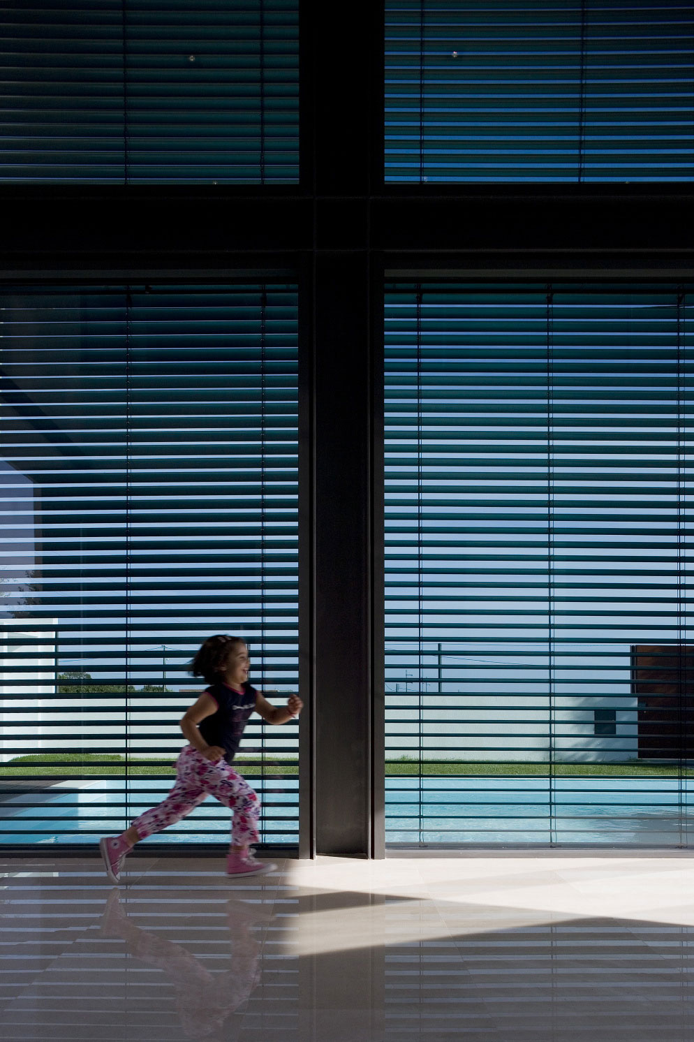 For better passive cooling, the outdoor pool is placed near the façade, making the best possible use of the natural sea breezes. Also, the water in the pool is not chemically treated, so it can be reused in the garden for landscaping purposes. According to its architect, the residence impresses with “its simplicity, sense of adequacy and economy, respecting the greater values of environmental sustainability that served as inspiration”.