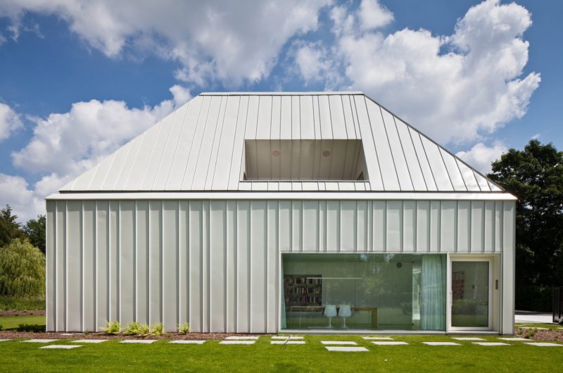 The lacquered zinc used for the walls and the roof integrates the house, even more, into the natural landscape.