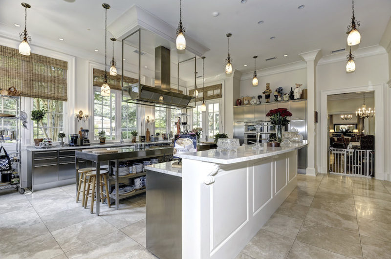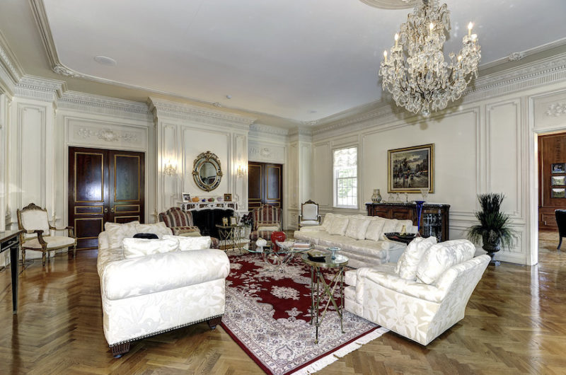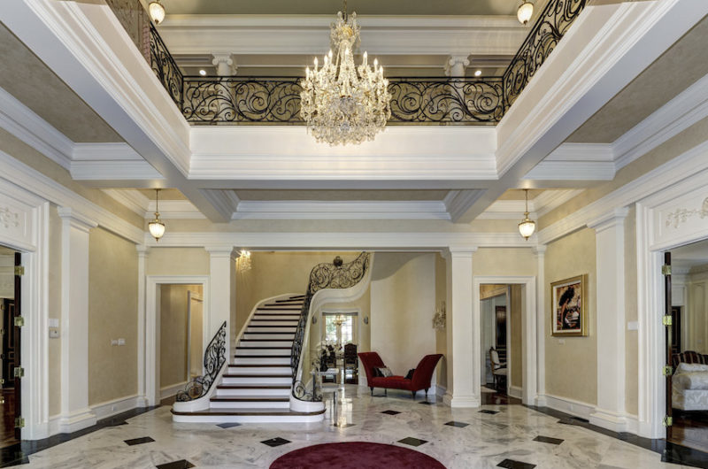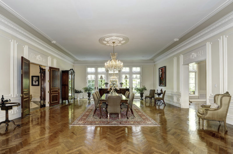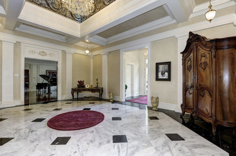 The property includes a little over 4 acres of land, which are more than enough to house a tennis court and a separate guesthouse. Other noteworthy details include plastic mouldings, inlaid hardwood floors, sumptuous chandeliers, modern appliances and a beautiful outdoor swimming pool.