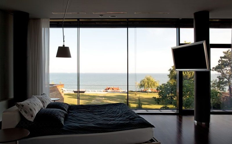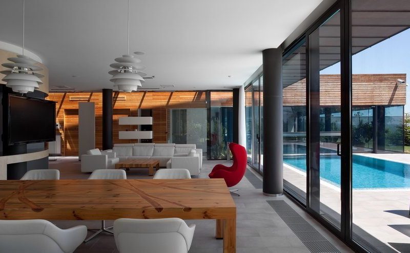 The Water Patio House located in Odessa, Ukraine, was designed by Drozdov & Partners. It features a large swimming pool that connects the space of the ground floor with the terrace and enhances the view towards the sea.