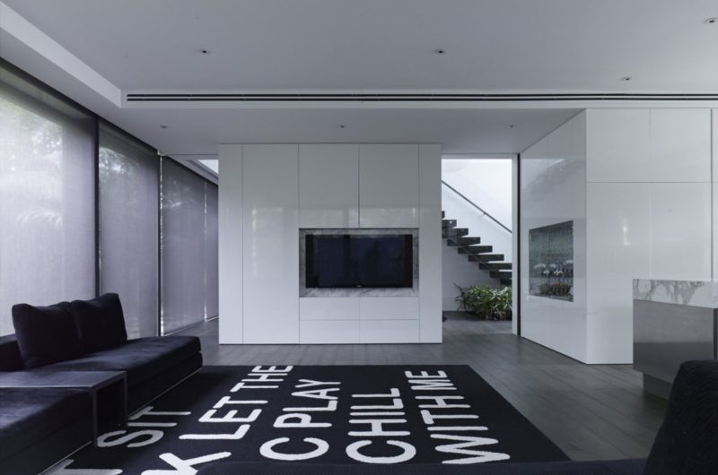 The ground floor living areas are divided into two different locations: day/summer north and west facing areas that include the pool, the garden and the covered exterior eating spaces, and the night/winter east and south facing areas. Between these two important areas there are a two level void and a stair.