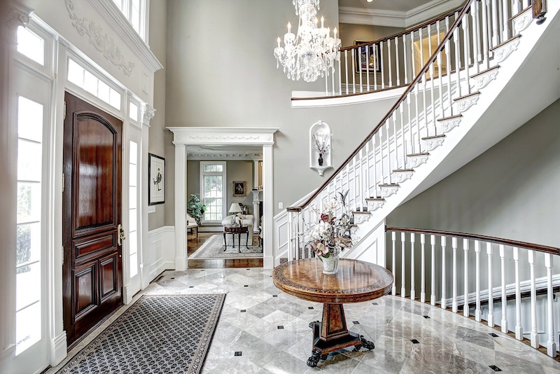 The Entertainer’s Estate in Maryland, United States is a recently updated custom mansion designed by Ted Visnic. It features a two-storey foyer, a two-storey family room, five fireplaces and custom plaster moldings.