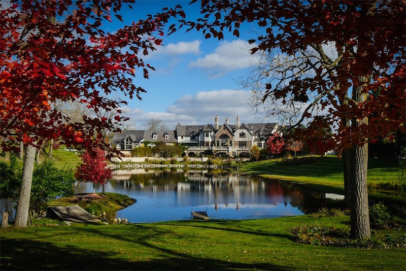 This vast European Country property in Barrington Hills, Illinois includes 70 acres of land as well as a superb 11-year-old brick and stone manor that flaunts unmatched luxury and sophistication. The estate goes by the name of Hidden Ponds – a name that was not chosen randomly. Indeed, the property features a number of concealed ponds, a beautiful lake and an English Pub with its own wine cellar.