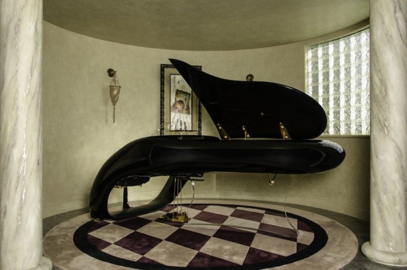 The house features plenty of amazing details that take the entire project out of the ordinary and give it that special something. For example the rotunda that has a 38 foot diameter is flanked by two large staircases and is highlighted by 20 foot high curved glass windows, a rare Schimmel Pegasus piano, a wet bar, fiber optic starlit mural of the ceiling and amazing views of Folsom Lake.