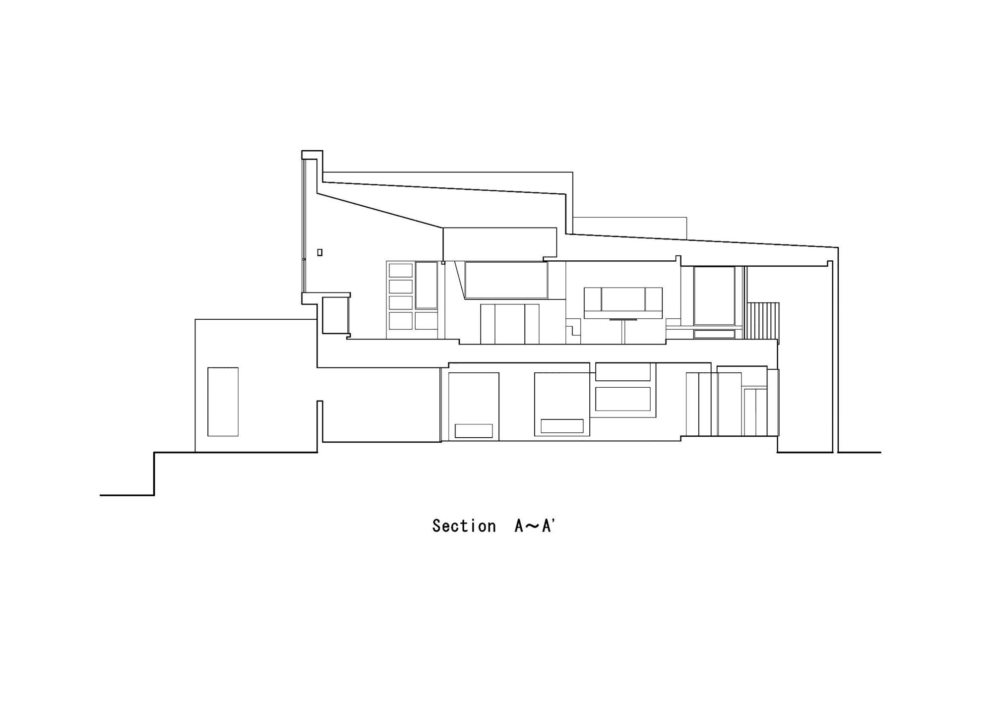 The house is located in the tiered-developed residential area on a hill. From the site, the beautiful scenery of the lake can be viewed. The customer requested that the view be fully utilized and that the space be opened while not being bothered by eyes of neighborhood.