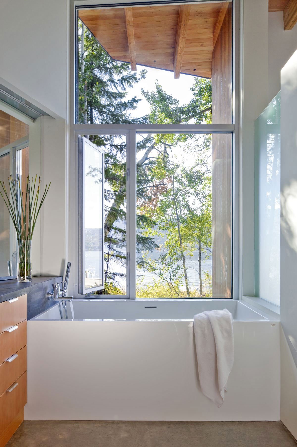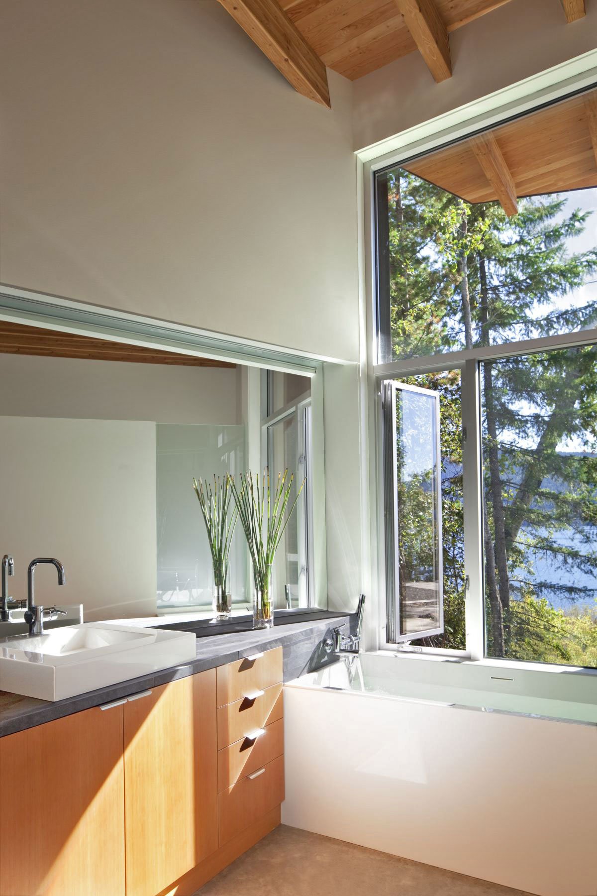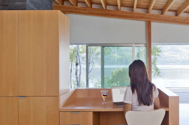 The interiors are organized around a central circulation hall, and they are dominated by an extensive use of different types of wood. This accentuates the rustic feel of the residence, while also giving it a warm and elegant feel. With a perfect combination of materials and colors, the Shuswap Cabin is a truly wonderful summer home.