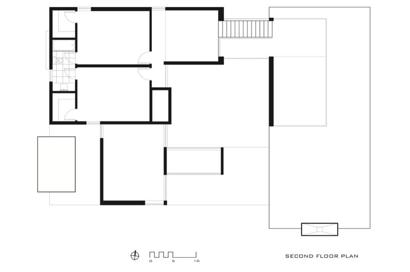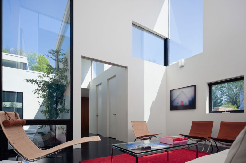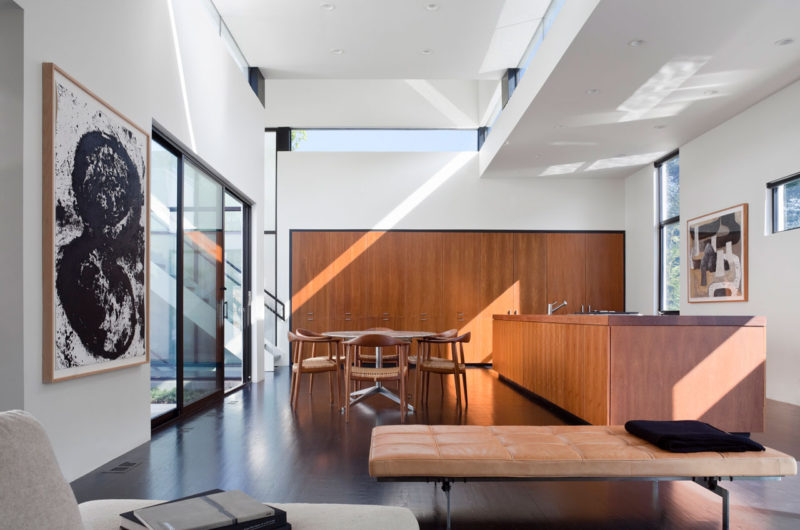 Using exceptional architectural techniques, David Jameson Architect managed to transform a single story suburban house into a modern and intricately designed house. The building resembles a tridimensional puzzle made of volumes linked by movement and space. The boundaries between outside and inside have been broken, and wall and glass mingle to form a compound of void and solid, space and light.