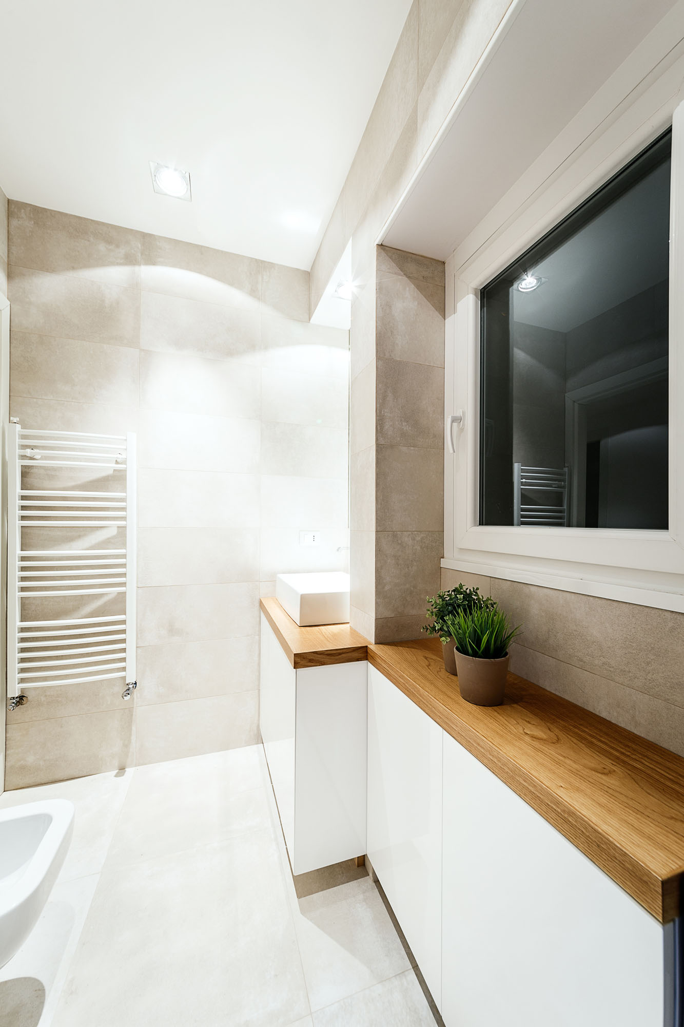 Concealed furniture and invisible doors introduce to the other rooms of the house, carefully designed with elegance. The bedroom is made precious by a bright golden wall, emphasized by the grazing light of the two wall sconces. Bathrooms have solutions for comfort and sensorial harmony, through natural materials and plays of transparencies, which are essential for the physical and psychological wellbeing.