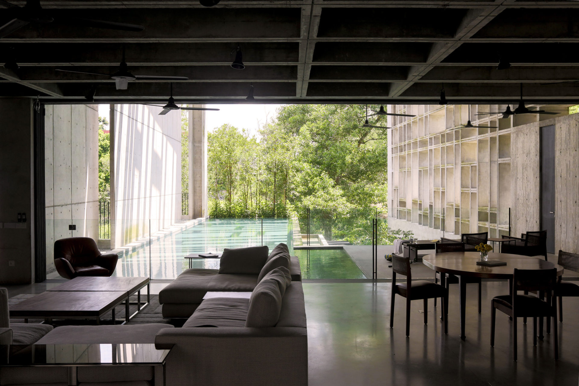A concrete tropical box that embraces the lush jungle. The project was envisioned as an inward looking abode that safeguards its interior from the tropical sun and rain while at the same time, embraces the dense, natural floral enclave that the house sits within.