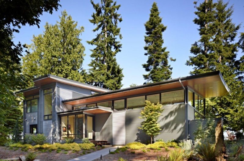 Located in Washington State, the Port Ludlow Residence by FINNE Architectsis a compact, 2400 SF modern house that lies on the edge of the gorgeous Hood Canal. The connection with the green landscape is made through the 12-ft. high glass walls facing the view and big 8-ft.x8-ft. sliding glass doors that open towards a wood porch.
