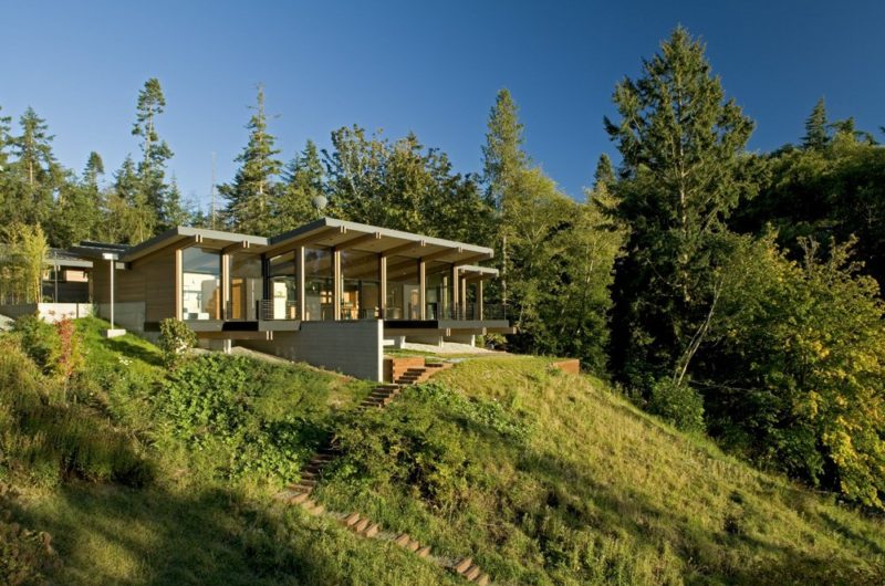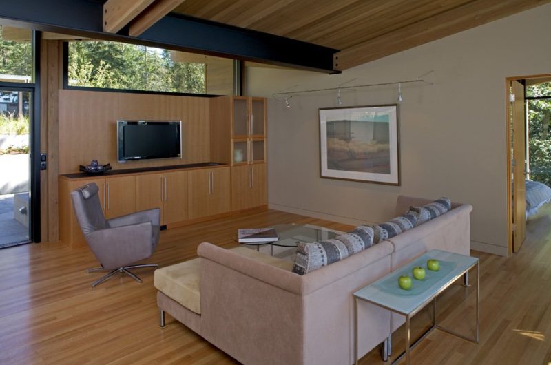 The following cabin located on Whidbey Island, Washington, was designed by CHESMORE|BUCK Architecture. The location is heavily wooded but still provides view of the busy boat traffic and to the Olympic Mountains.