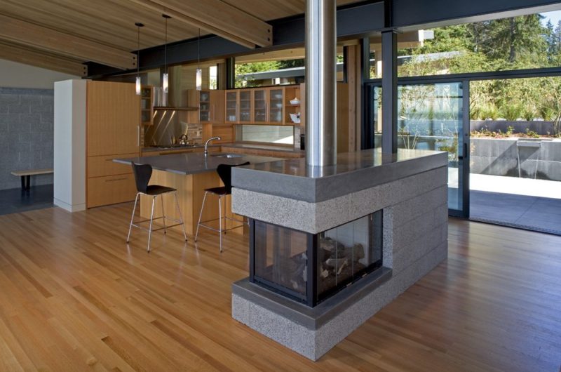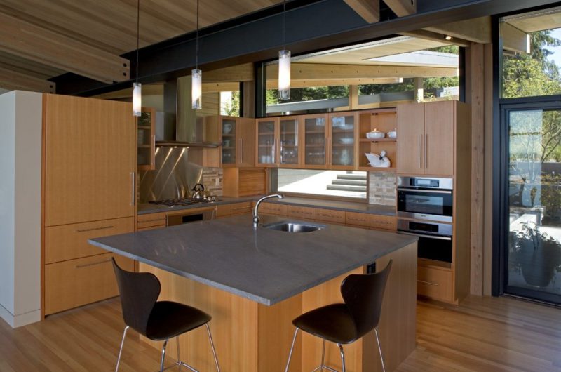 For the interior, the wood was also the main material which they opted for. Anyways, wood seems to be the leitmotif of this construction.
