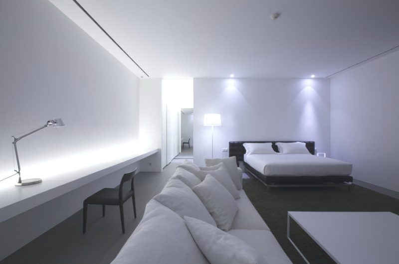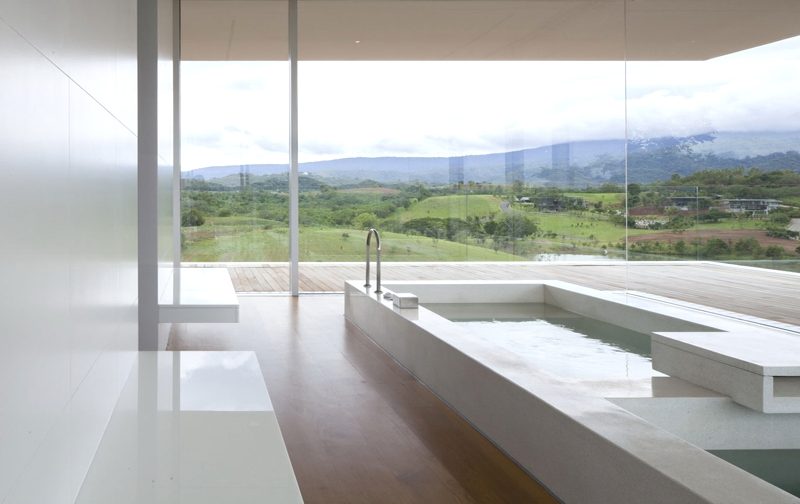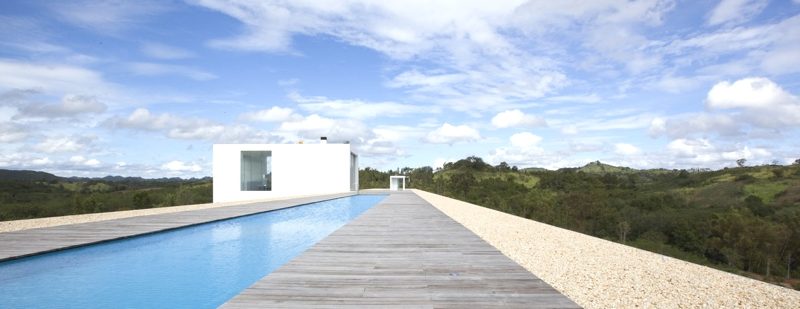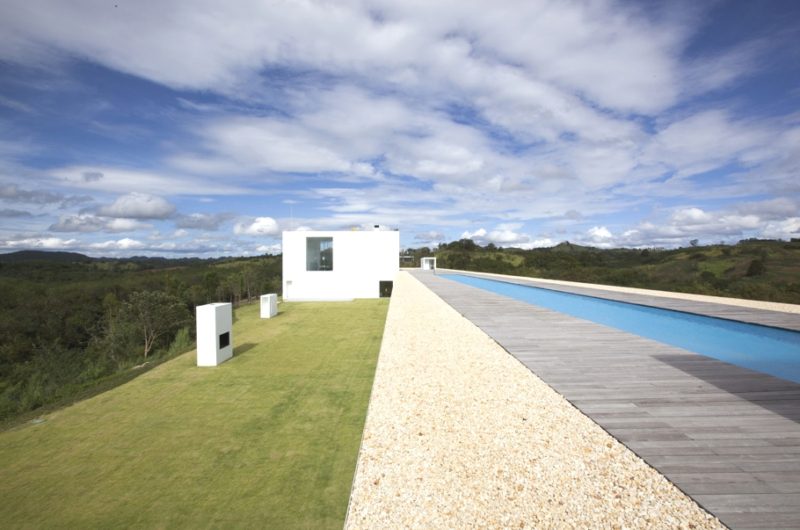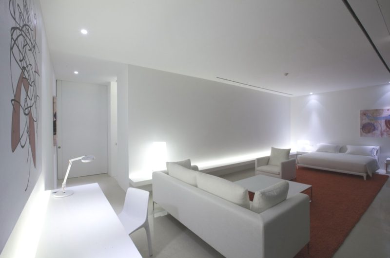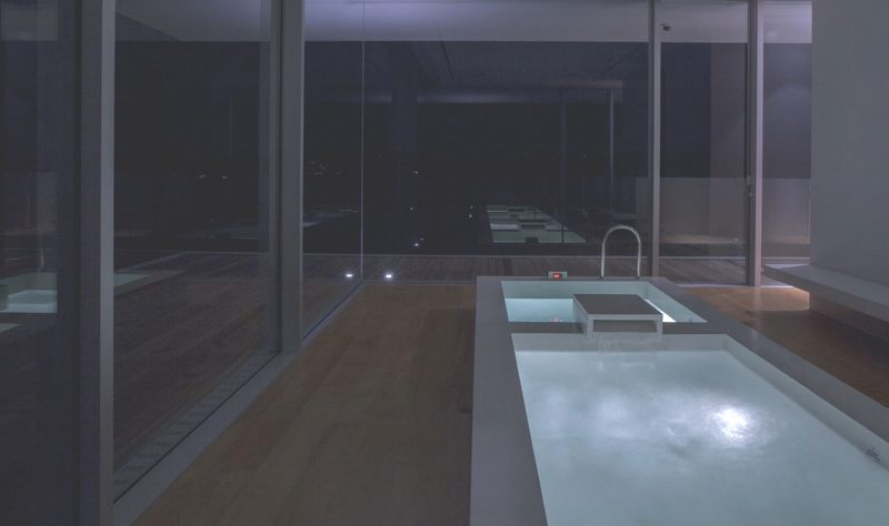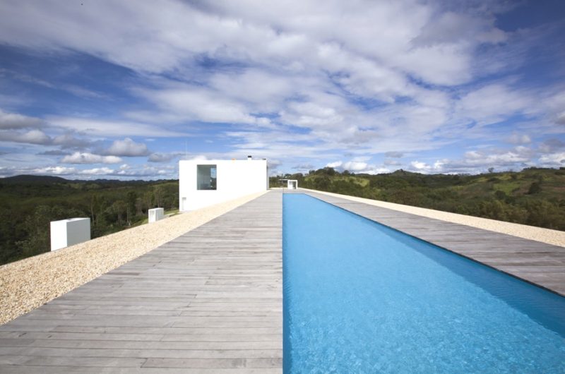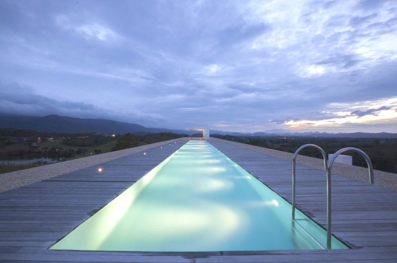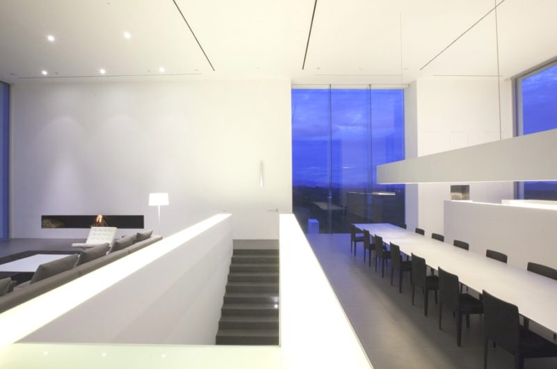 For extra entertainment there is a lovely rooftop fun and relaxation area, with a long swimming pool (131 feet) and sandy area, just “like a floating beach surrounded by mountains.” The pictures also show a cube with 19.6-foot tall ceilings holding the formal living/dining area. Our only question is: how long does it take for one person to go from one end of the house to the other?