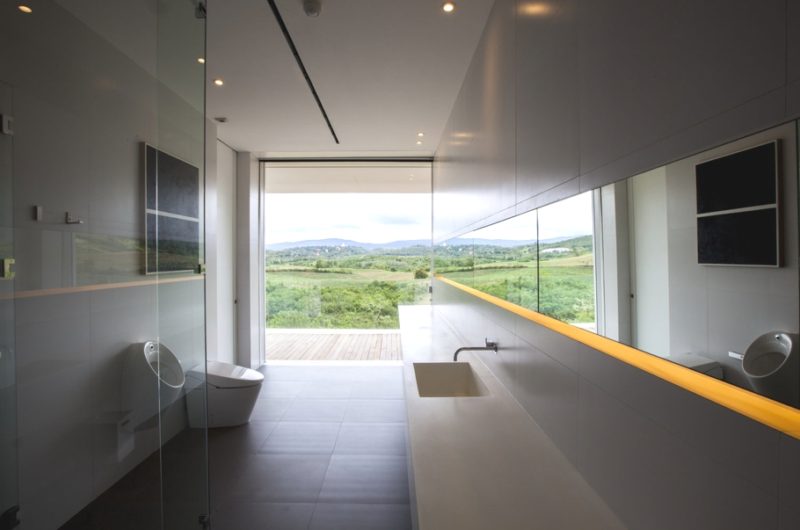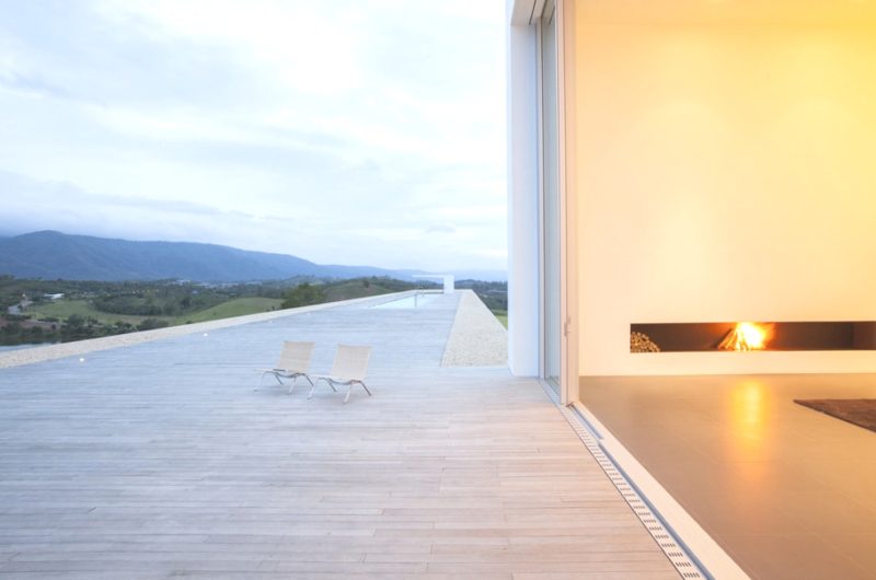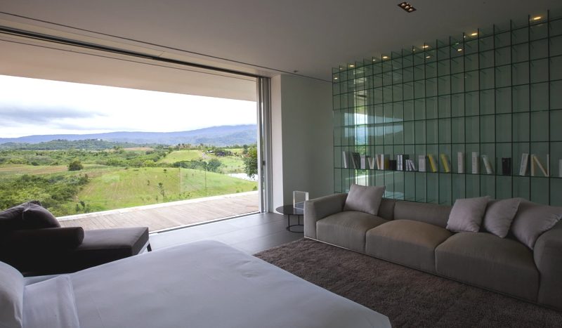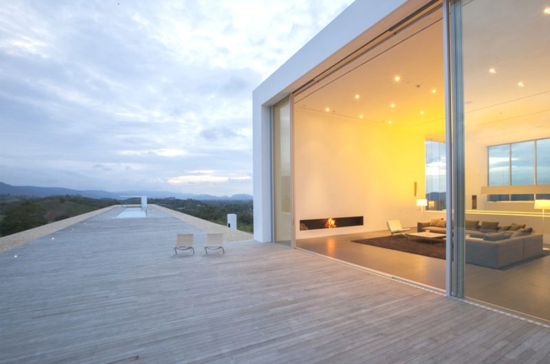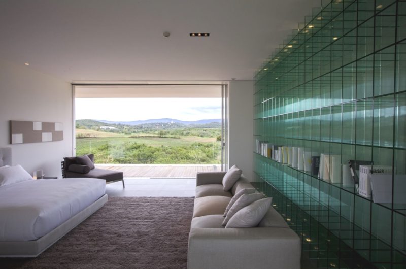 There is a main house on the property and a separate guest house, with the first featuring six bedrooms and a huge living/dining area. The main house also includes a storage/staff room to the west, and a glazed fitness and spa room to the east. The rooms that are set linearly along construction are beautifully open towards the south deck terrace, taking full advantage of the panoramic views.