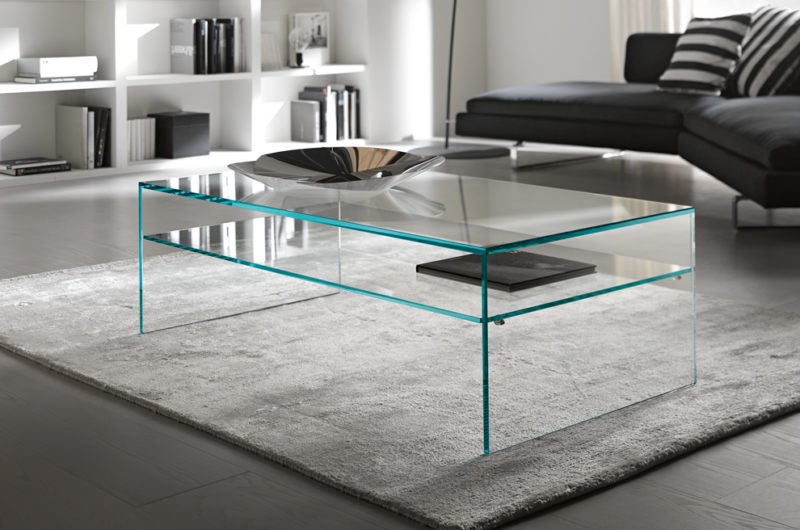 Number one reason for choosing a glass coffee table is material. Glass creates transparent illusions of large and clean spaces. Glass helps you make a room look larger, airy and spacious.