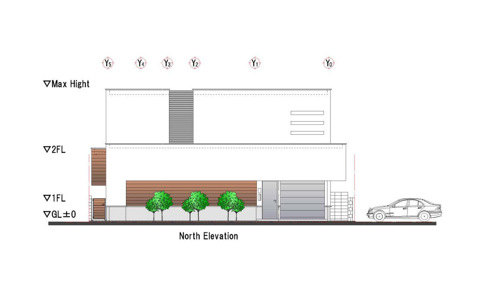 House is retreated from the road in 2600 mm to plant trees in order to harmonize architecture and environment. When a car entries the house, it is needed to use remote-control to open overslide door. By this way, it enhances ability of crime prevention and owner can entry house safely from entrance.