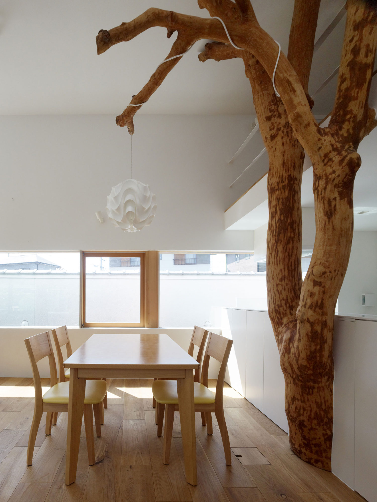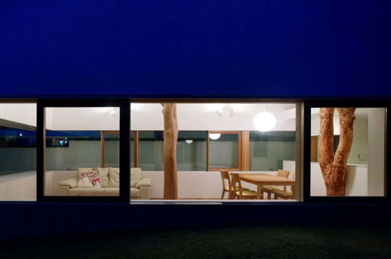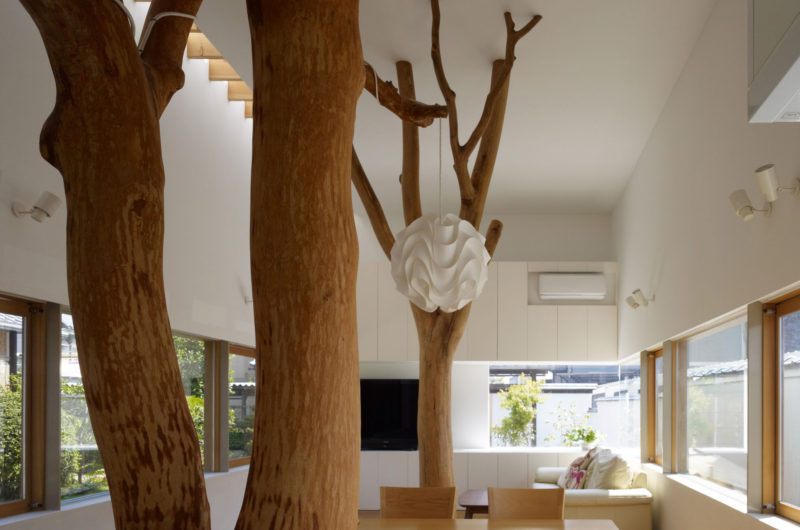 The Garden Tree House located in Kagawa, Japan is a modern residence created by Hironaka Ogawa Associates in 2012 for a client that owned a property including a pair of trees with sentimental value and wanted to keep them without being an obstacle for the existing house. The architects managed to respect his wish and re-purposed them as a focal point in the new structure.