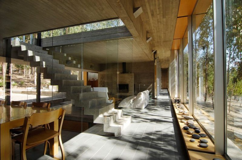 The Omnibus House in Cachagua, Chile was designed by Gubbins Arquitectos. Because the owners didn’t want a typical urban home with kitchen, living-dining room, bedrooms, this house was equipped with a double circulation that turned these areas into complimentary places.