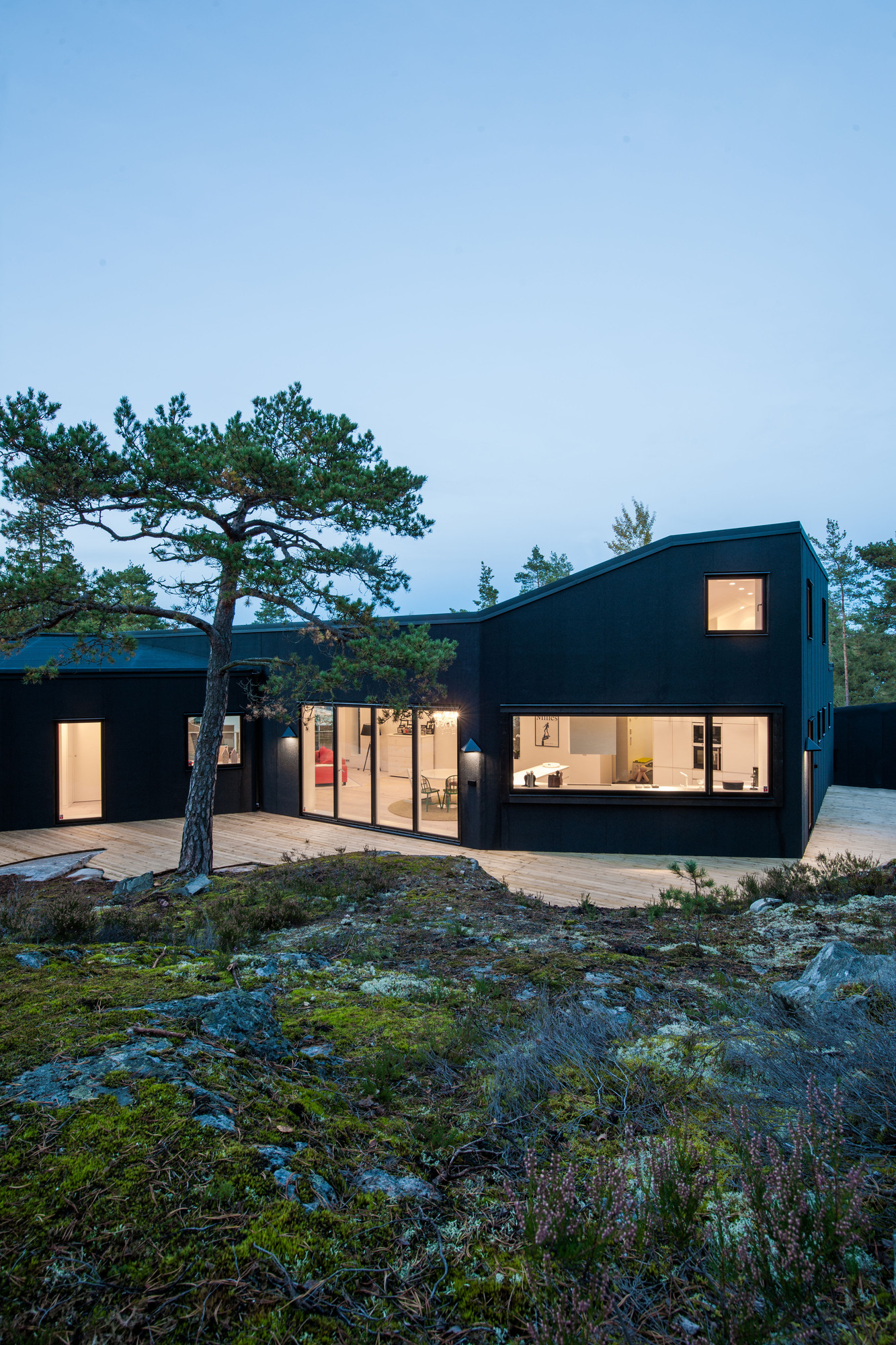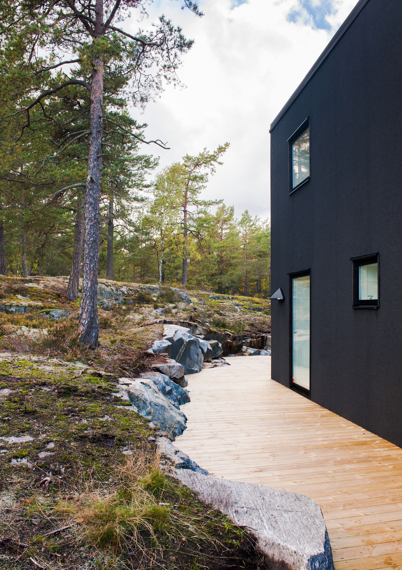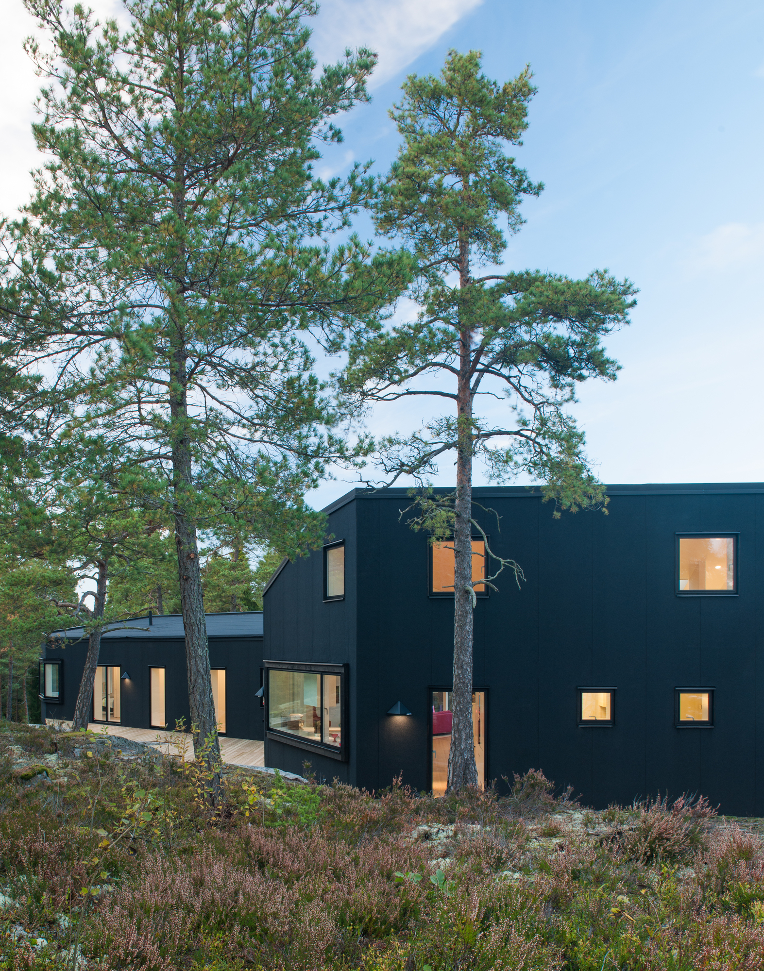 It’s black on the outside and white on the inside. A chromatic game, that’s what the pS Arkitektur played when they designed Villa Blåbär. It is located in Nacka, outside Stockholm and provides gorgeous views into the forest, plenty of space and a unique design.