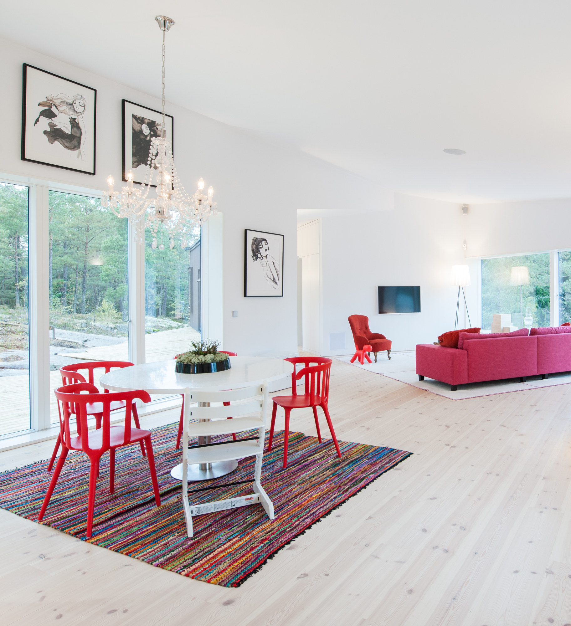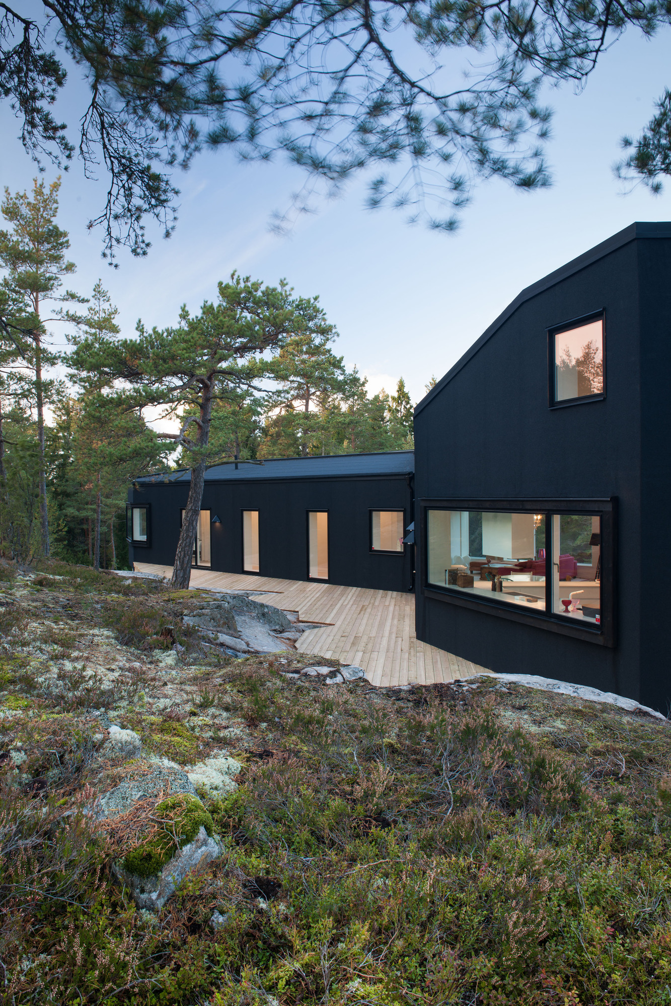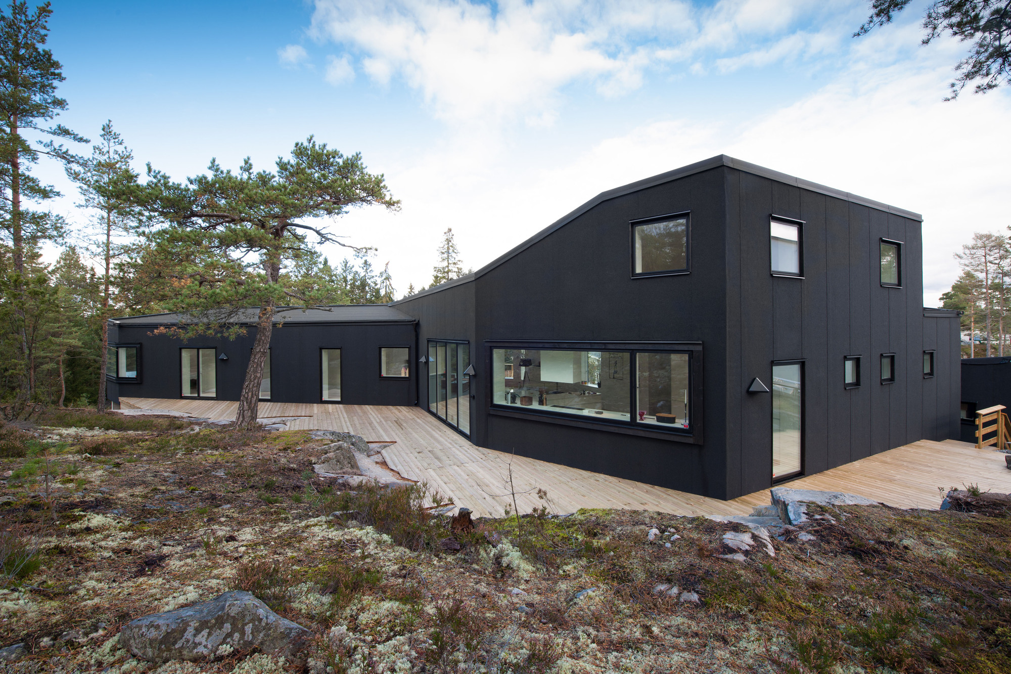 It’s black on the outside and white on the inside. A chromatic game, that’s what the pS Arkitektur played when they designed Villa Blåbär. It is located in Nacka, outside Stockholm and provides gorgeous views into the forest, plenty of space and a unique design.