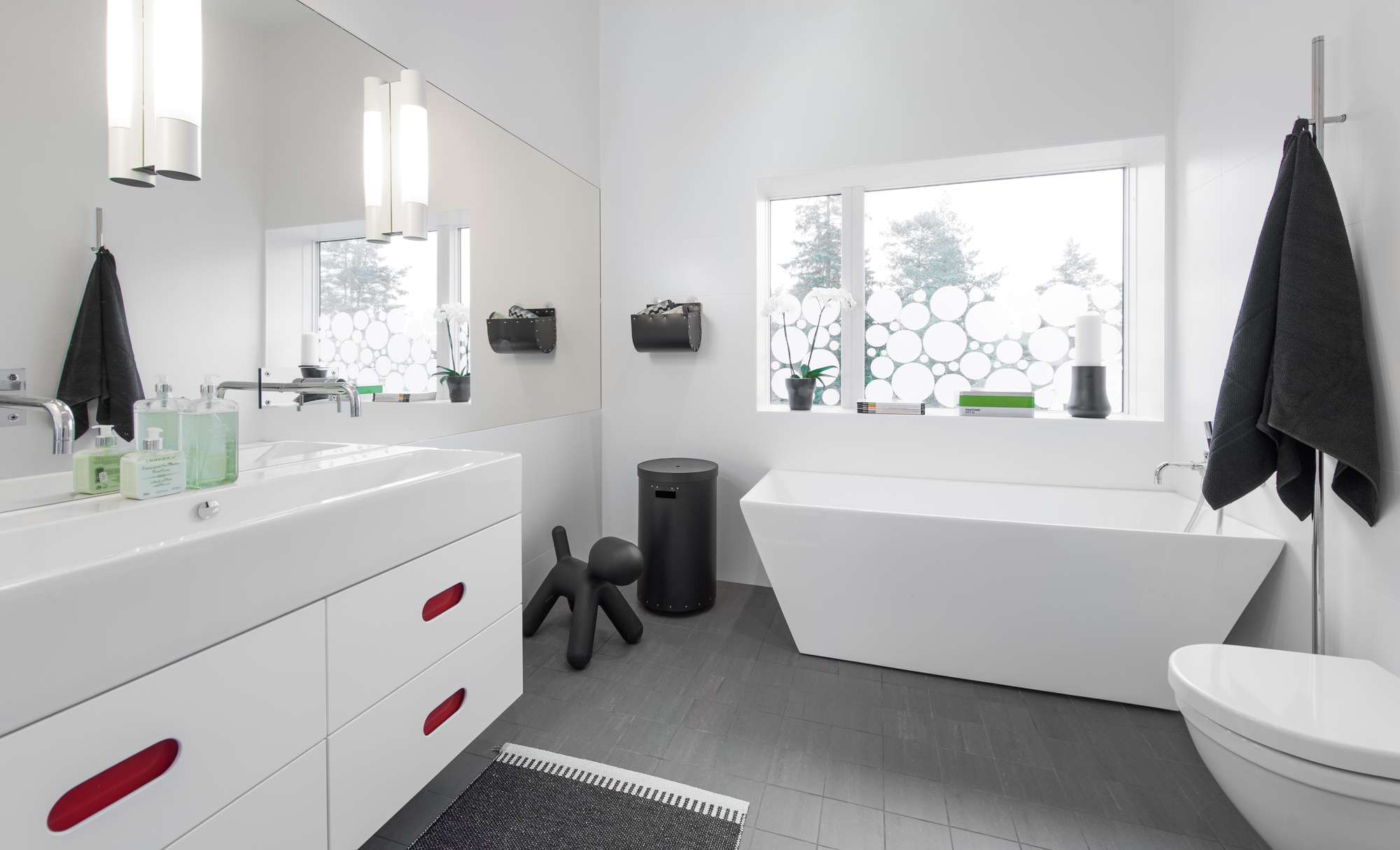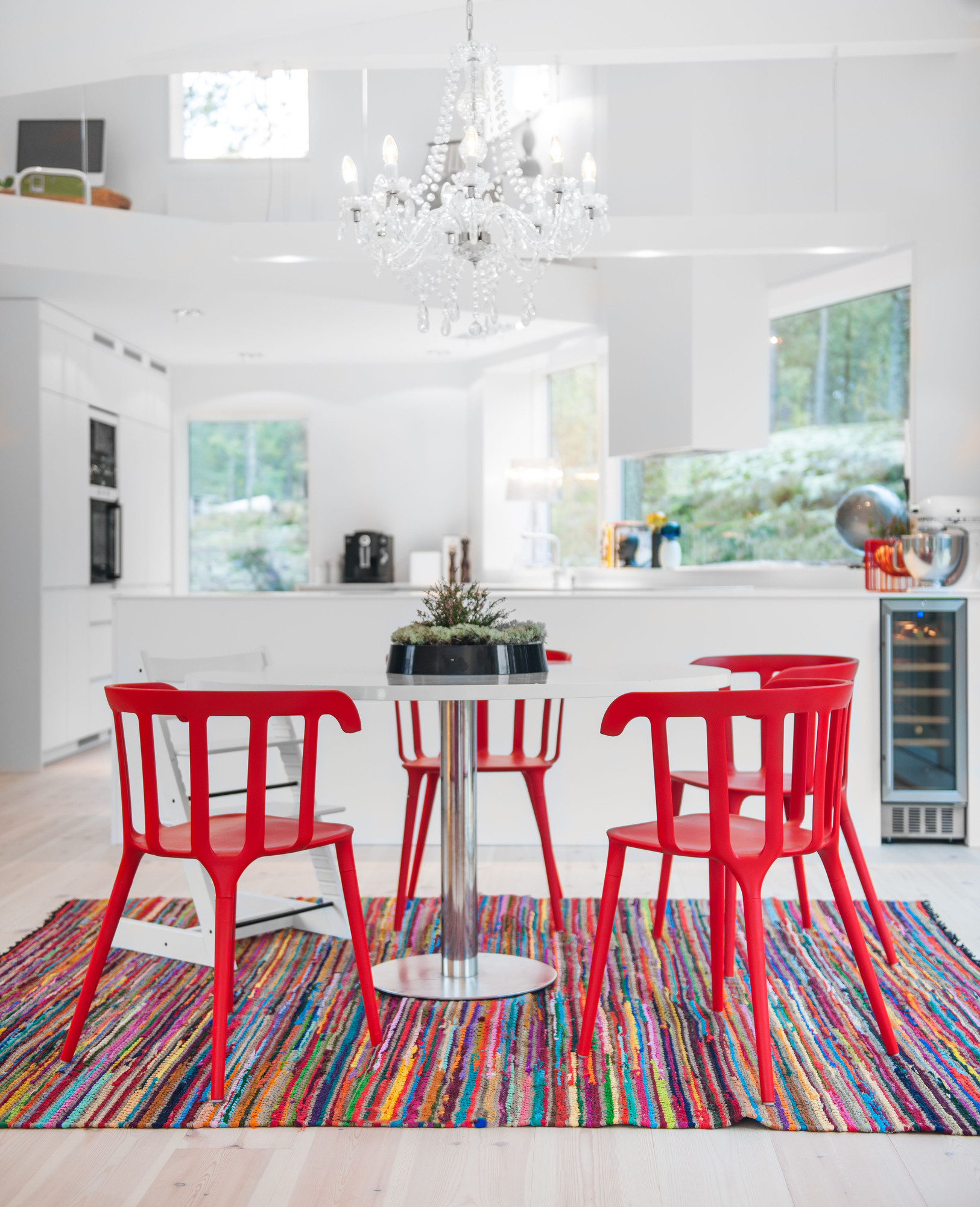The house preserves a lot of energy due to the multitude of windows and together with an air heat pump and a geothermal heating system, is turned into a money saver.