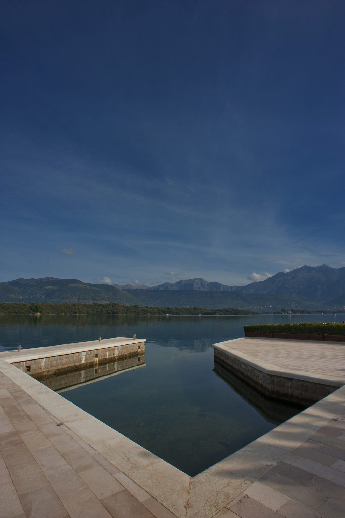 CONTEXT / The building is designed on urban lot no. 66, urban zone no. 9 within the boundaries of Location Study for Sector 27 and Sector 28, Krašići, Municipality of Tivat in Montenegro, in direct vicinity of the sea coast. The lot is positioned on the southern shore of the Tivat Bay. Terrain is facing north with direct – undisturbed view of the bay. Programme solution is aligned with functional, aesthetic and technological concept, after which Detailed Design was prepared.