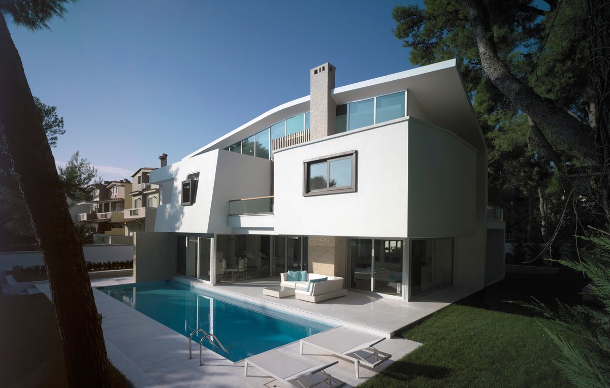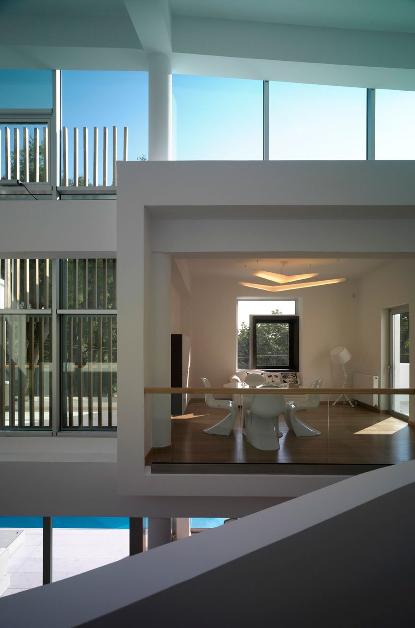 Located in Ekali, Athens, Greece, this contemporary home was completed in 2010 by architect Thanos Athanasopoulos. It is a single-family residence surrounded by pine trees and featuring large glass doors/windows that ensure a perfect communication with the outdoors.