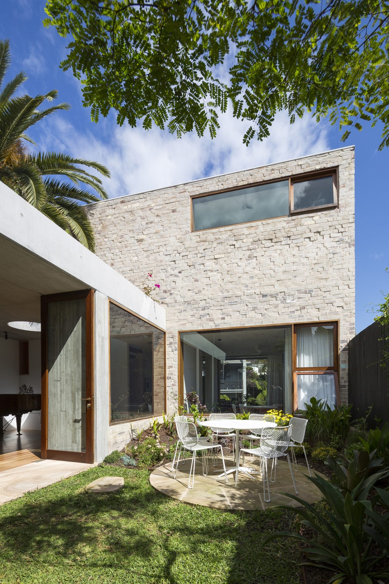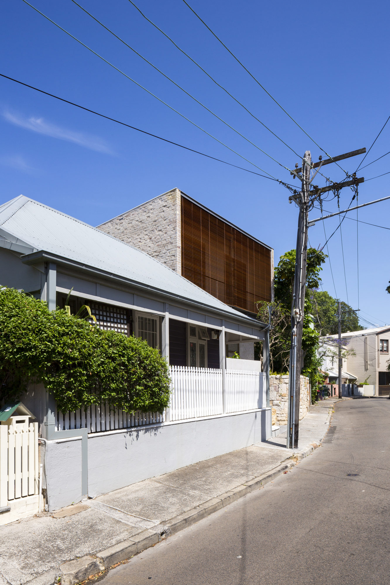The existing house on the site was a decrepit 1880s two-story house that had been significantly altered over time leaving little of the original intact. Extensive termite, mould and moisture damage had further reduced the structural integrity of the original house meaning the existing form could not be salvaged. The new house however takes the envelope and general site arrangement of the original as a starting point. It re-traces the existing form, maximizing access to natural light and ventilation to all rooms and in doing so reinterpreting it for today. The house maintains traditional elements of the terrace vernacular but reinterprets them through a contemporary lens. Public and private zones are subtly articulated, mediating your relationship to the street through layered vantage points as you move through the house. The overhanging balcony, sandstone foundation and visual contrast between the front and rear of the house echo the patterns of the surrounding terraces.