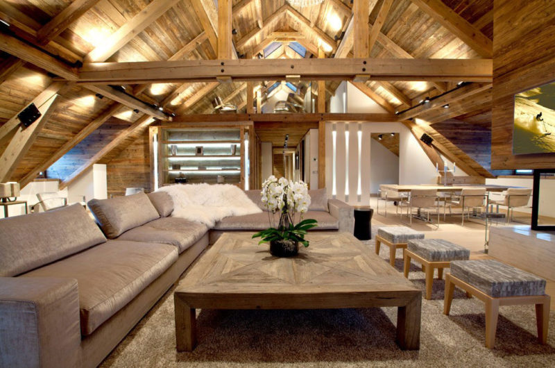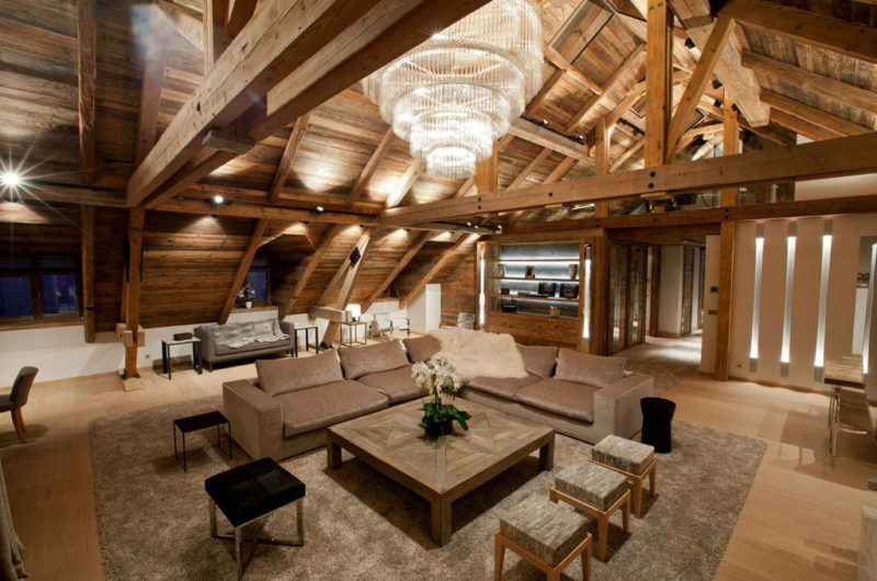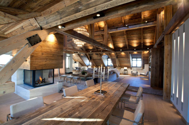 Bo Design created the rustic but modern apartment Iced Water. It’s an eclectic warm haven located in the middle of the woods with thick ceiling beams and walls and ceilings of wood, in the same time featuring modern furniture.