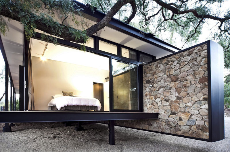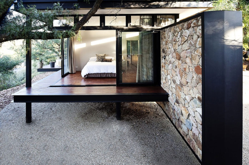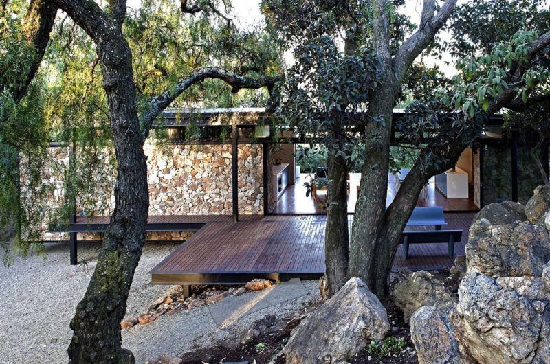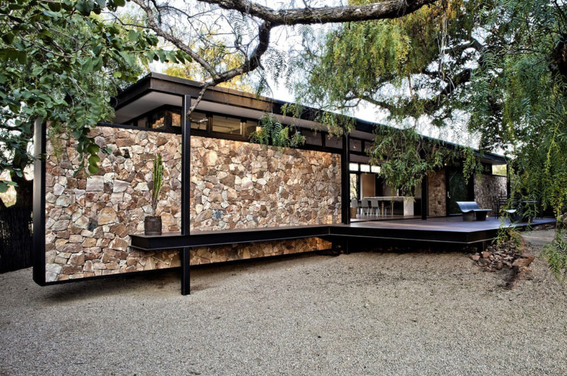 Finally, there is one more thing that is special about the Westcliff Pavilion. Almost all nearby homes feature native stone work into their facades, and GASS Architecture drew a little inspiration from here as well. Consequently, they used locally sourced stones to create a very zen wall, but they did this without fully complying to tradition. Instead of creating a strong, sturdy stone structure, they decided to create the impression of a floating wall. We love the idea and we love the project as a whole.