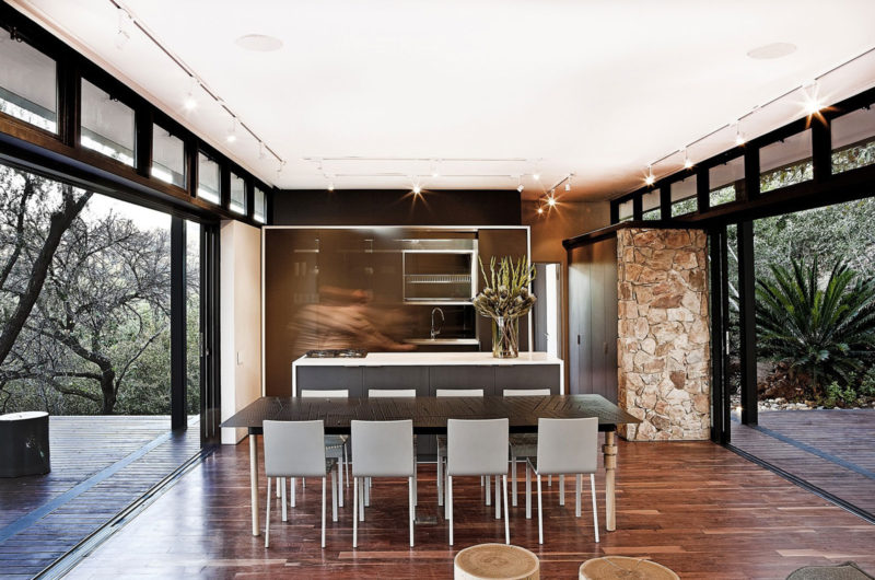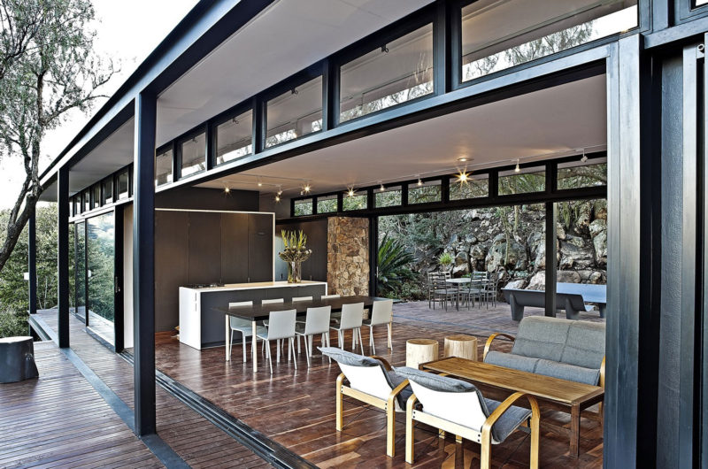Westcliff Pavilion is a dreamy residence on the Westcliff Ridge in Johannesburg, South Africa. It was completed by GASS Architecture, who gave it a steel frame and an overall warm and cozy feel. The house has two bedrooms, and all its spaces are beautifully open towards the natural environment.