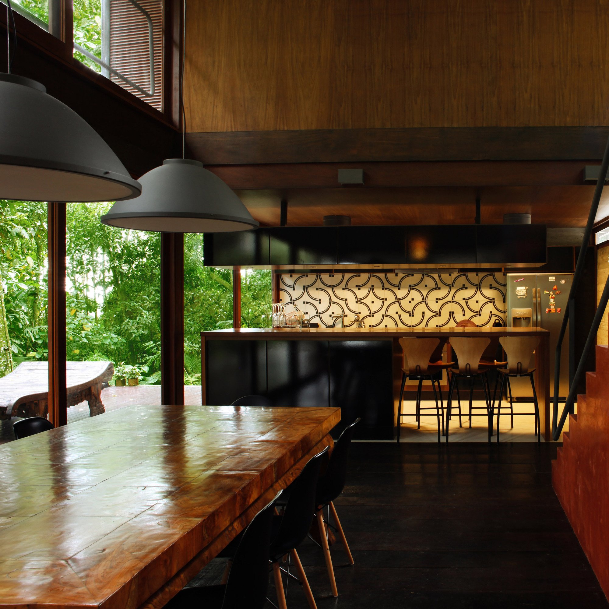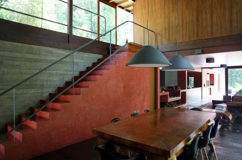 Sketched out under the guidance of skilled architects Cristiane Muniz, Fernando Viégas, Fábio Valentim and Fernanda Barbara from UNA Arquitetos (terogsa nu maienumeritotiarhitectii. Ajungenumelefirmei), this spacious and elegant home can be found in Joinville, Santa Catarina, Brazil, and it was completed in 2013. The abode flaunts 4,650 square feet of living space and was built at an elevated location, on a hill that is surrounded by trees and other forms of natural vegetation.