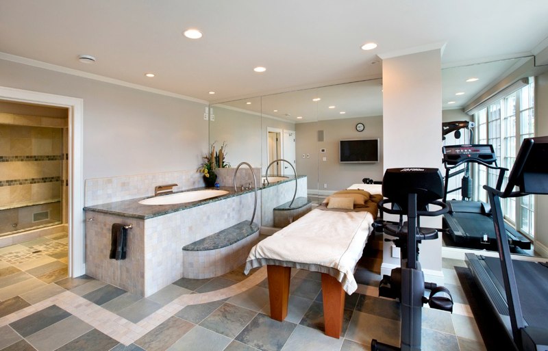 The $14,999,995 worth, three-level property will impress with attention to details: beautiful fireplaces, natural wood flooring made of oak, stone elements, a home theater, a wine cellar with controlled temperature, spa facilities, and modern technology. For accommodation, the dwelling has 6 bedrooms and 7 full-bathrooms, but two of the bedrooms are on a lower level and can get multiple uses, from guest rooms to staff quarters.
