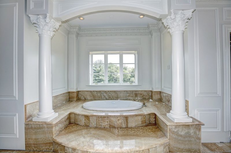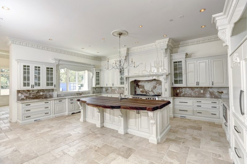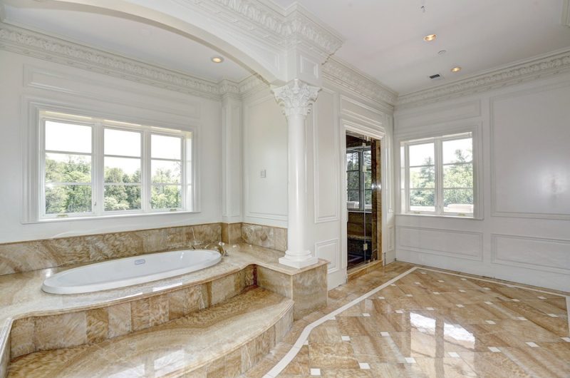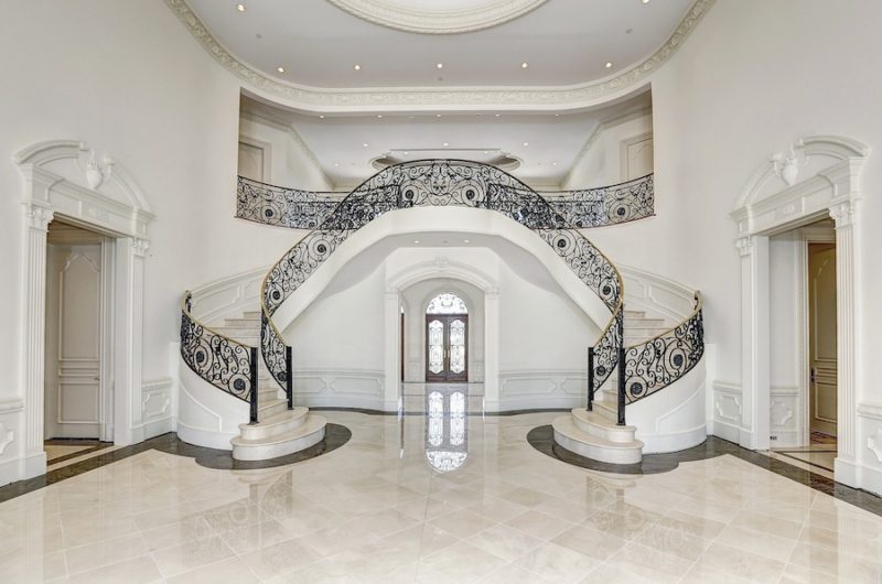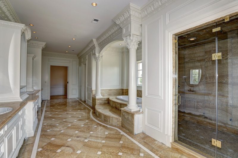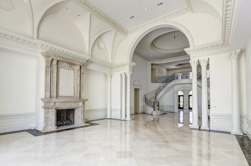 This precious two-level home includes an amazing two-storey library with custom milled cherry & tiger wood paneling. It also features a gorgeous two-storey great room, a floating curved marble staircase, two elevators, beautiful plaster moldings, a gourmet chef’s kitchen and a spacious master suite.