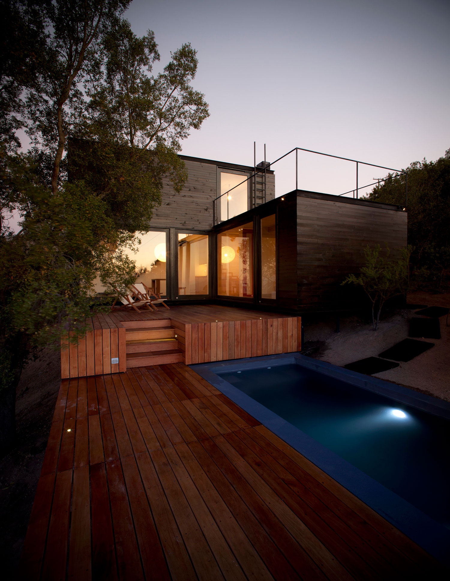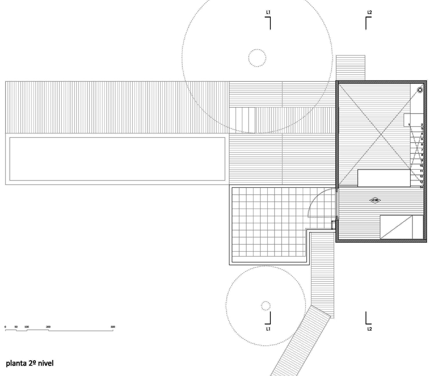 The pool communicates with the house through a deck, offering easy access and being adapted to the conditions of the site.