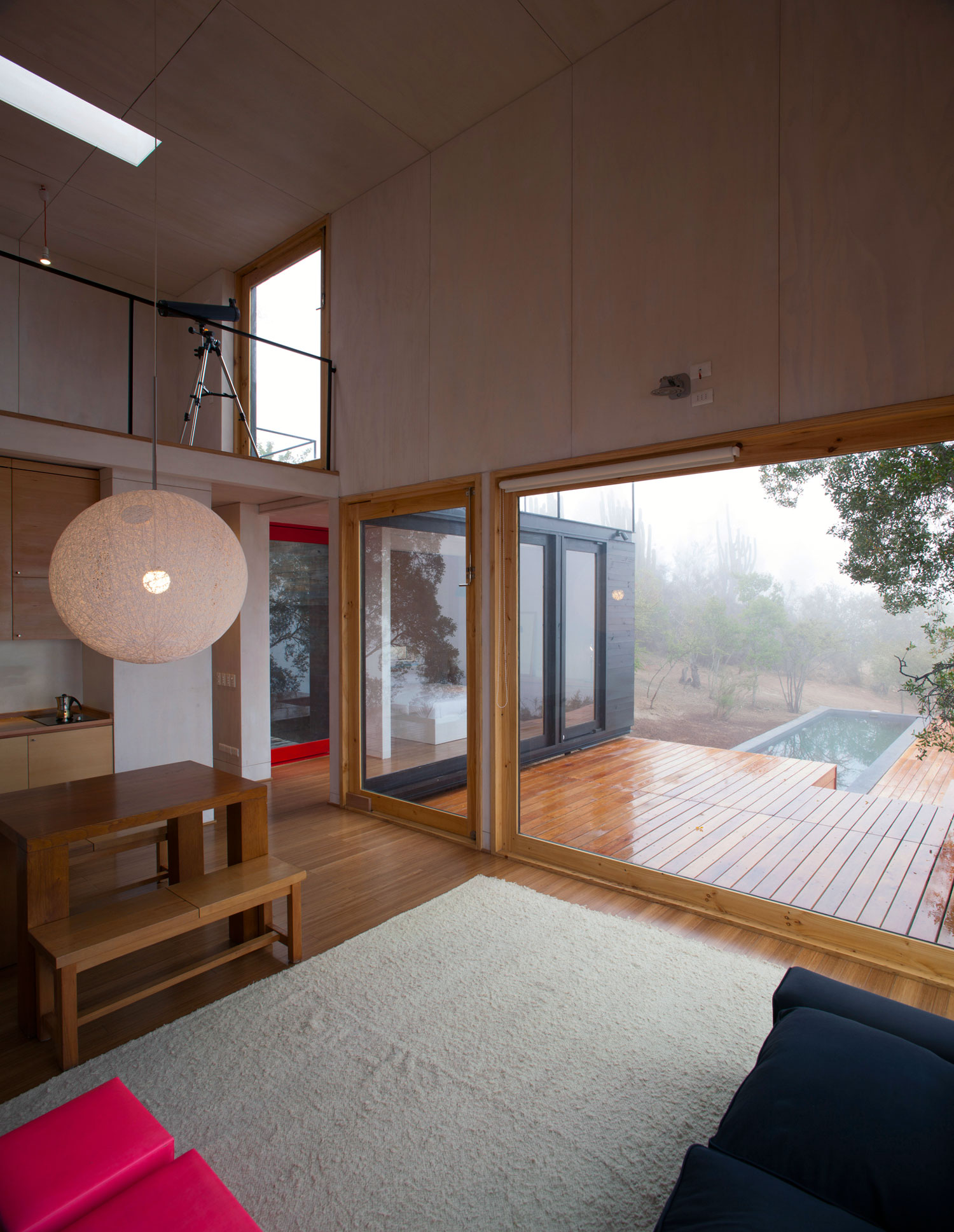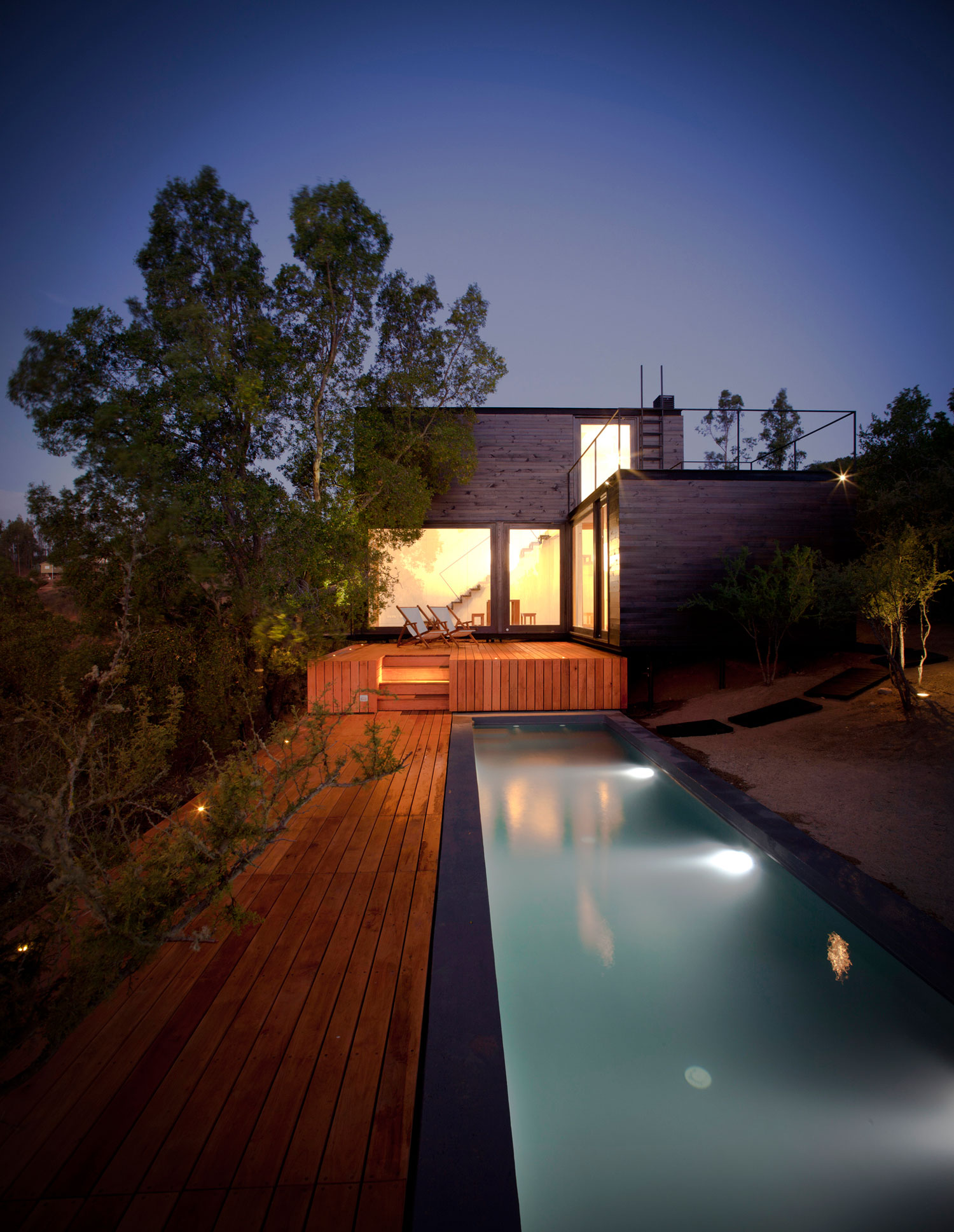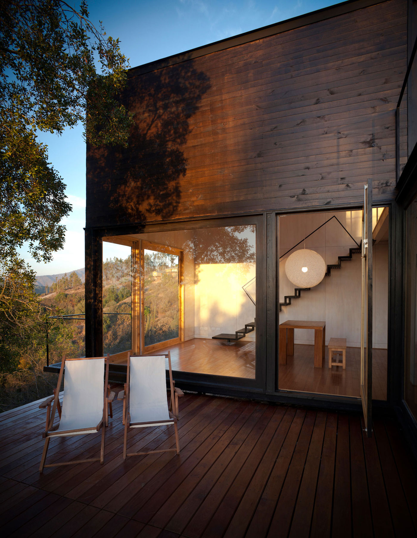 Situated on the top of a slope site of 5000 sq. meters, the Pangal Cabin designed by EMa Arquitectos is surrounded by local trees such as Quillayes, Cactus and Espinos. The house was supposed to be used as a refuge but gradually was turned into a dolled place.