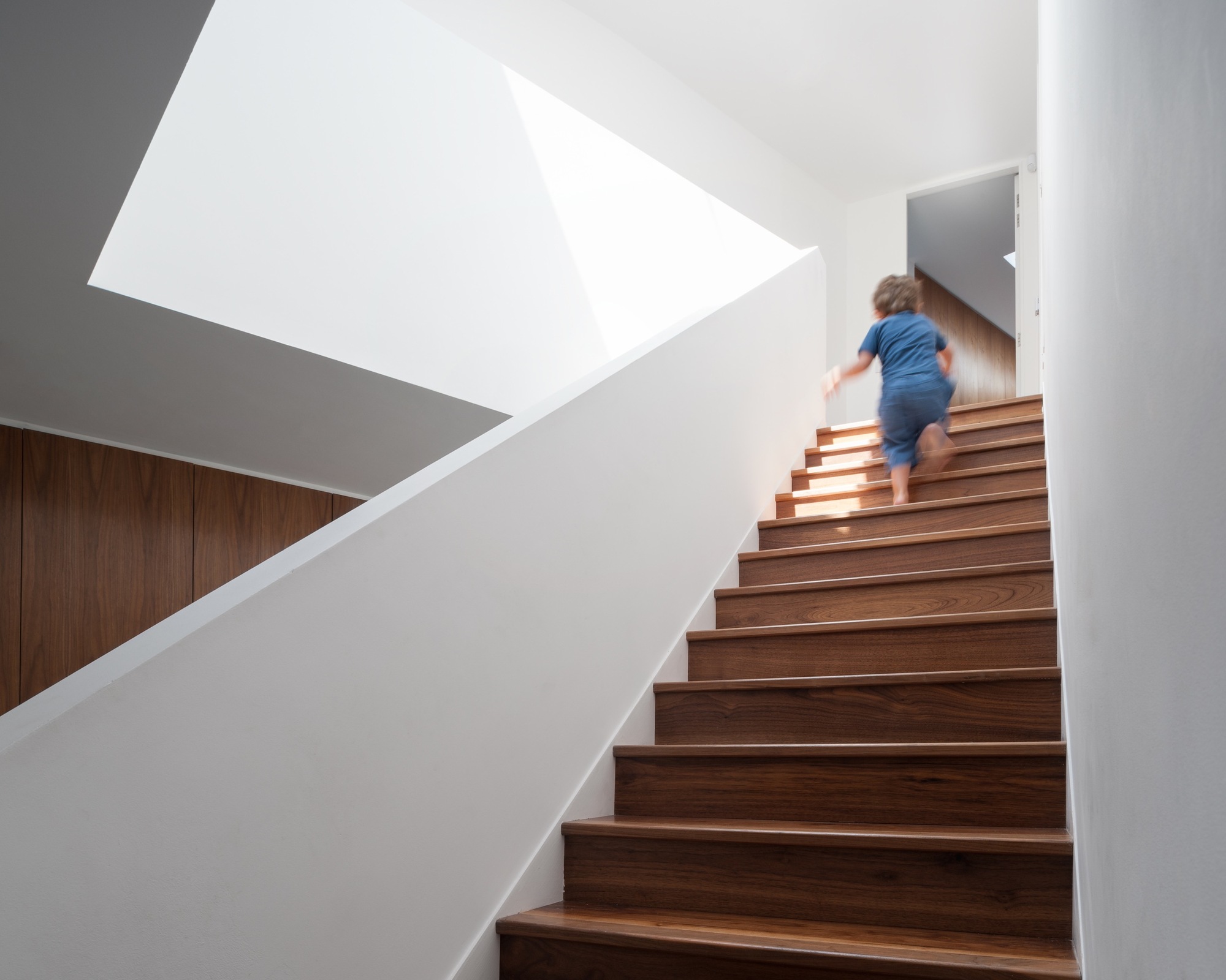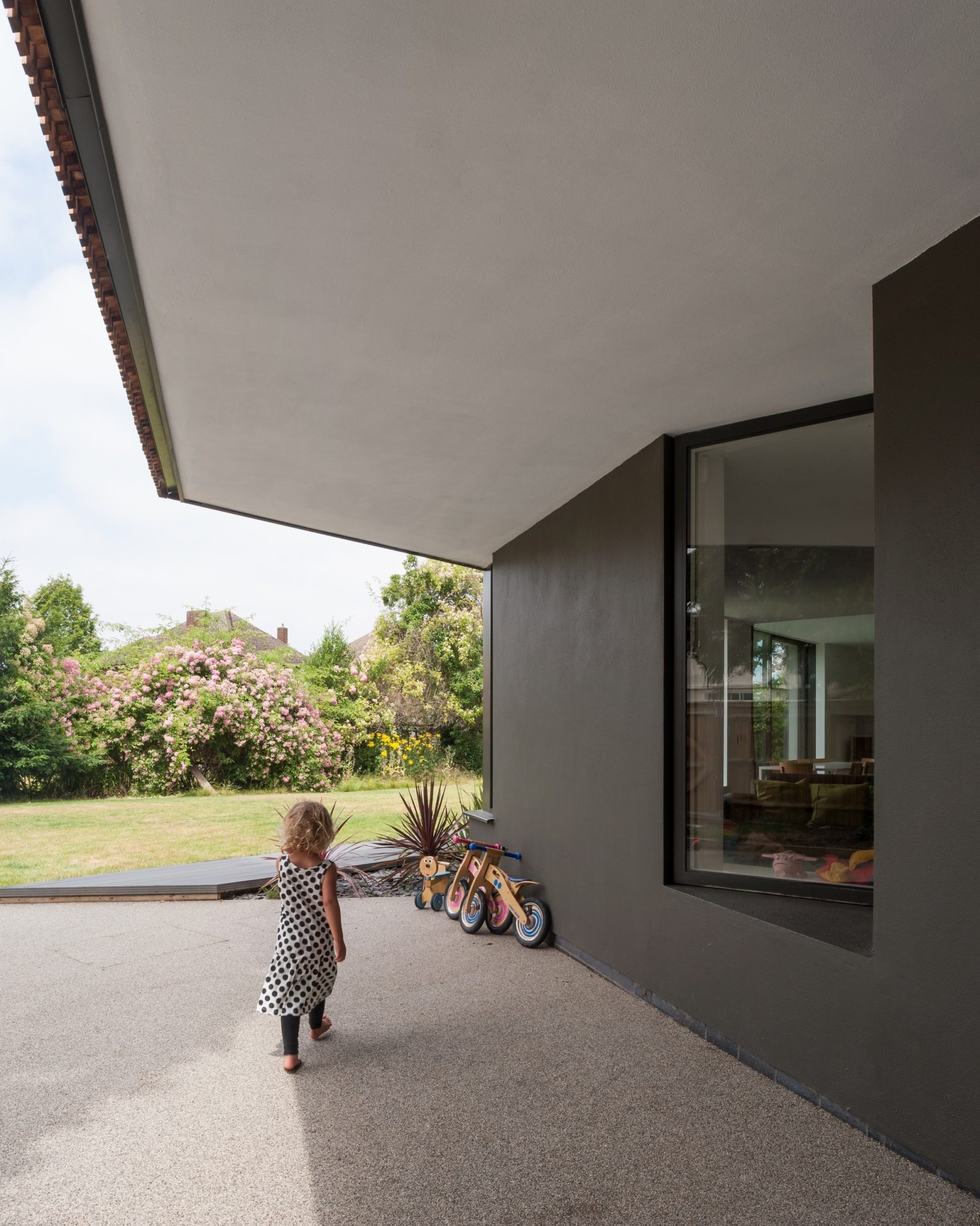 The house was built on the site of a beautiful suburban garden and benefits from relaxing views of the surrounding environment. The overall design is based on a series of asymmetric volumes that blend seamlessly into a practical and innovative layout. Apart from its impressive looks, this abode was also equipped with state-of-the-art facilities that ensure a certain degree of self-sustainability. For example, a Heat Recovery Ventilation System helps maintain a constant and pleasant temperature throughout all living areas, while an integrated rain-water harvester and a series of solar panels provide much needed cold and hot water respectively.