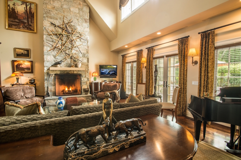 The double-height living room comes with a fireplace and high quality furnishings, while the kitchen boasts state-of-the-art appliances, wooden cabinetry and modern lighting systems integrated into the ceiling. For $4,900,000, this place is a steal especially considering the fact that the 2-acre property also comprises a guesthouse as well as lush landscaping and gorgeous gardens that offer great opportunities for relaxation.