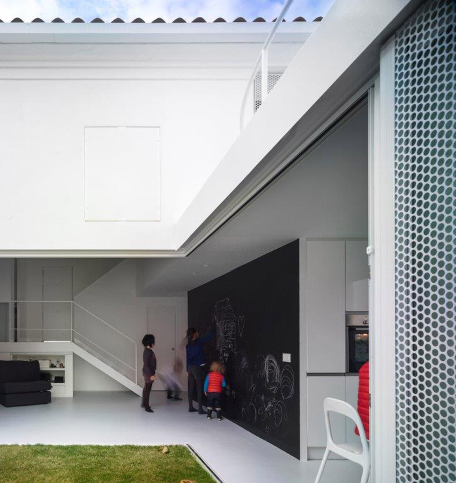 The house space is continuous and the rooms are defined with no need of confinement, keeping an open relationship among them, evolving naturally with the house owners. The kitchen is placed in the backyard as a small pavilion allowing a ring circulation, and connecting the living room, the garden, a green exterior hallway and the children room. The Mediterranean weather of Malaga city allows extending the inner house space to those exterior ones which integrate as new rooms.