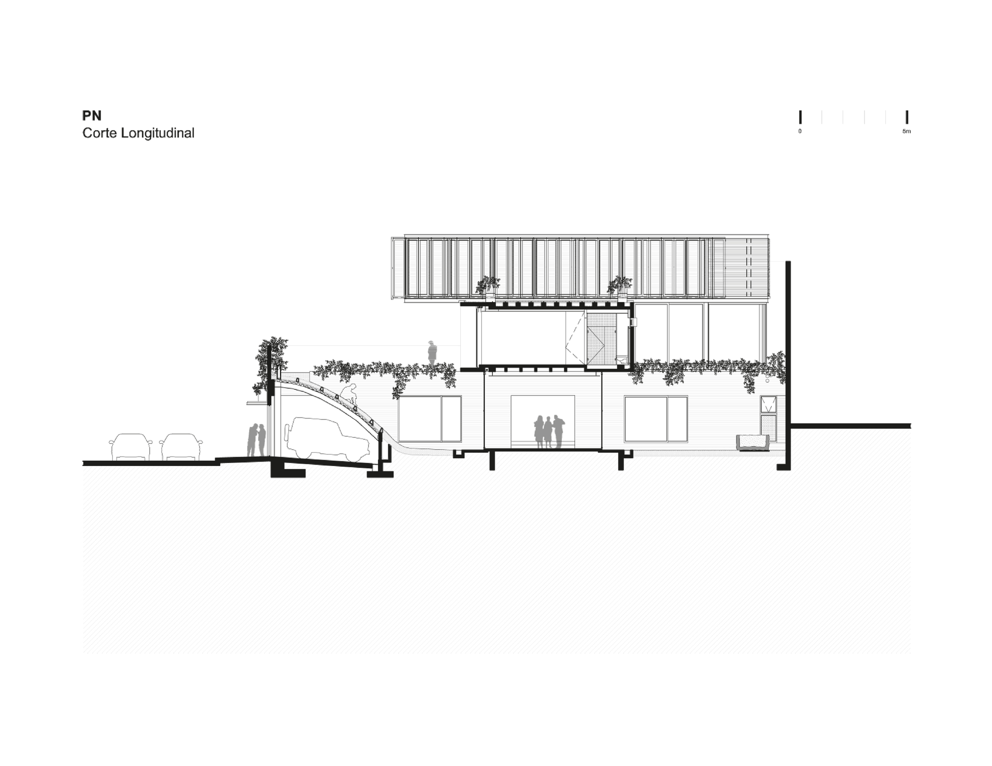 The street facade respects the required setback, and also sets a dialogue with the typology of the neighborhood, which in order to work with an upward slope, often presents a masonry wall (volcanic rock) and vegetation on top. Thus continuity is achieved in the urban fringe. One element of design that was used is to achieve the depth of the site can be understood from different perspectives, both long and short-sense. This allows for a large spatial extent (both inside and outside).