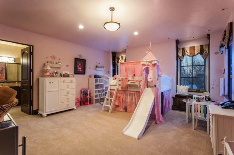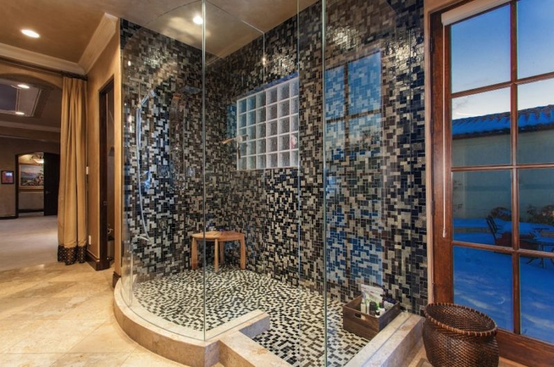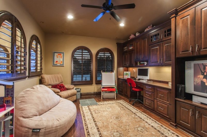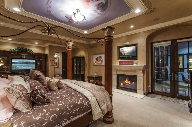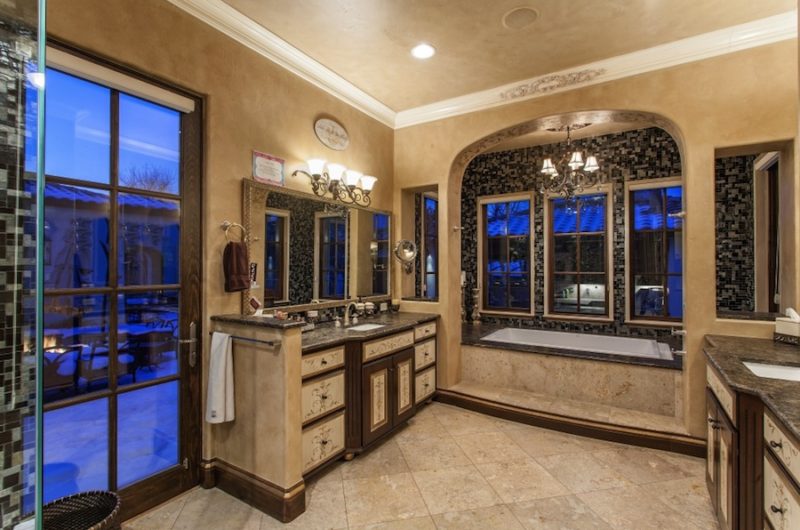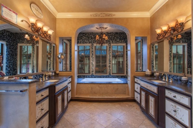 The estate includes 7 bedrooms, 11 baths, a private-entry nanny’s apartment with kitchenette and private bath, his and hers powder room on the main floor, Mediterranean influences all over the place and stained glass throughout the house for elegance and style.