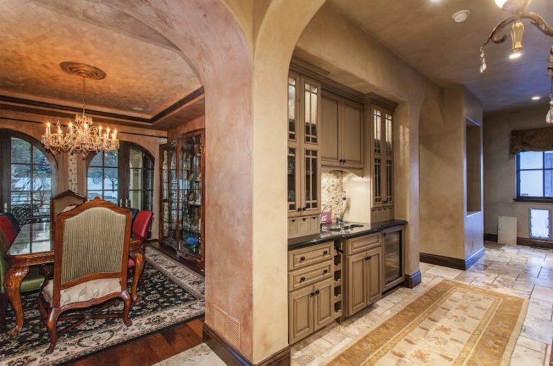 The meticulous attention to details can be observed on the Venetian murals and faux painting to the outdoor pergola, and on the imported Italian tile and stone from the wine cellar and tasting room.
