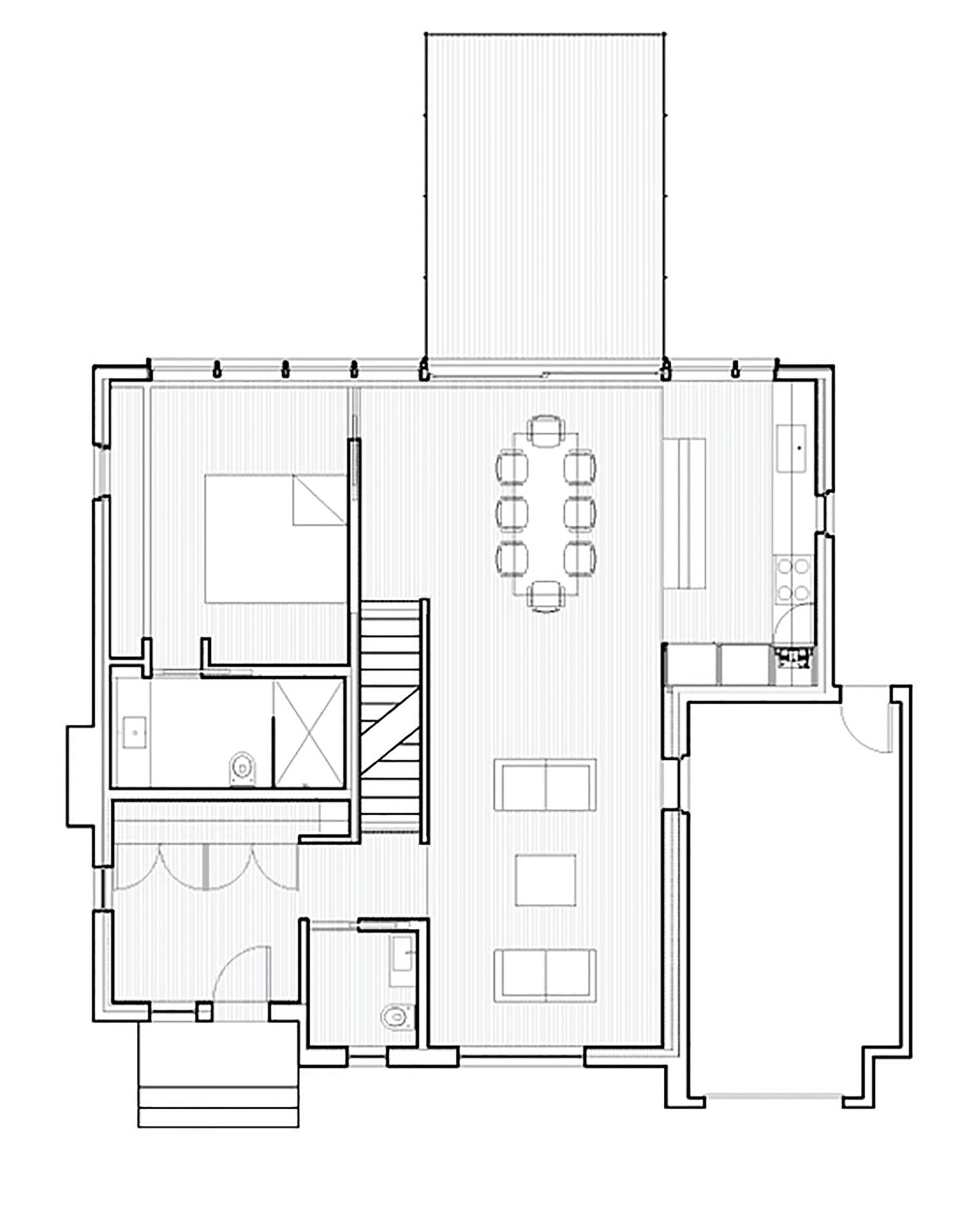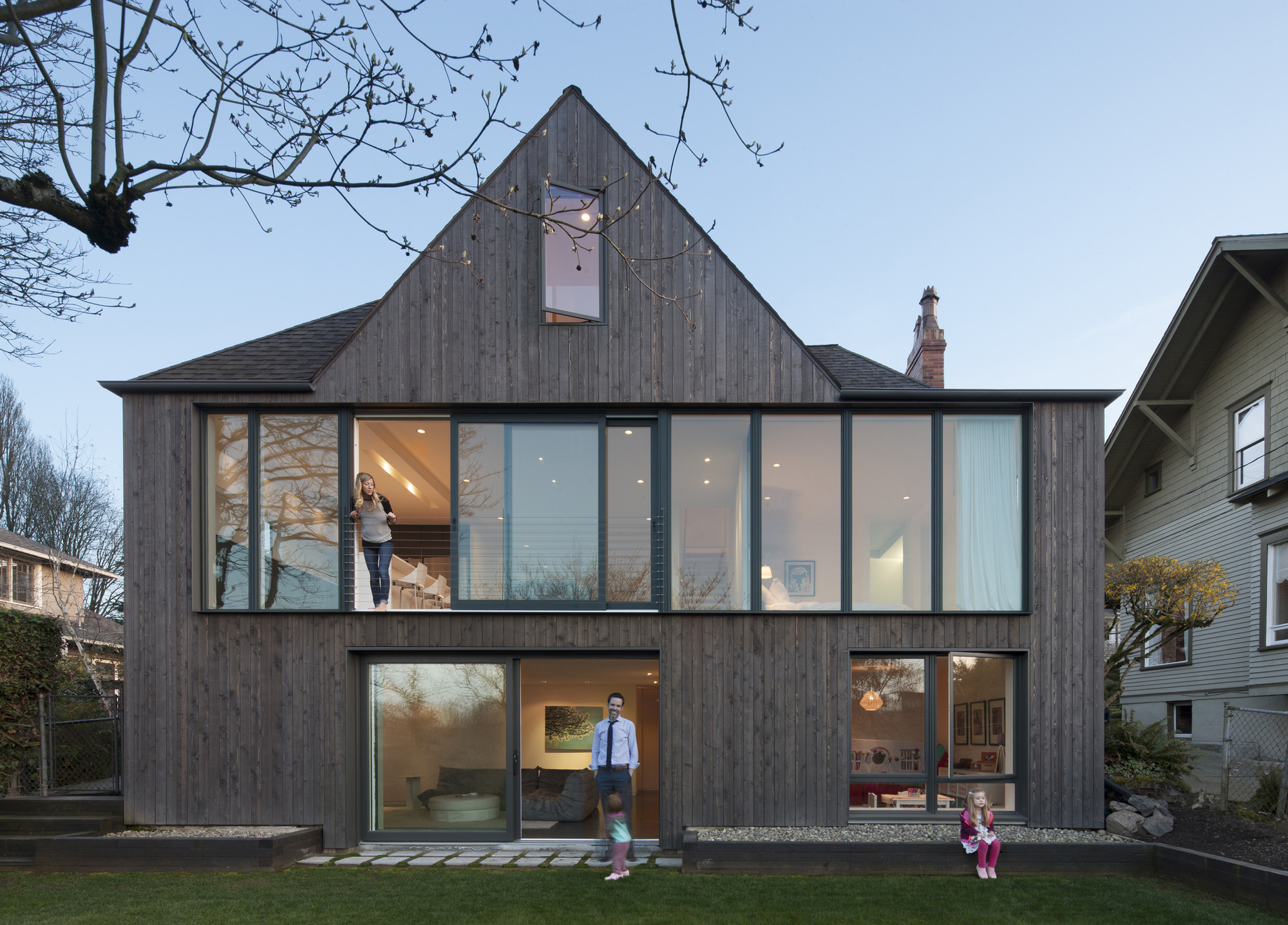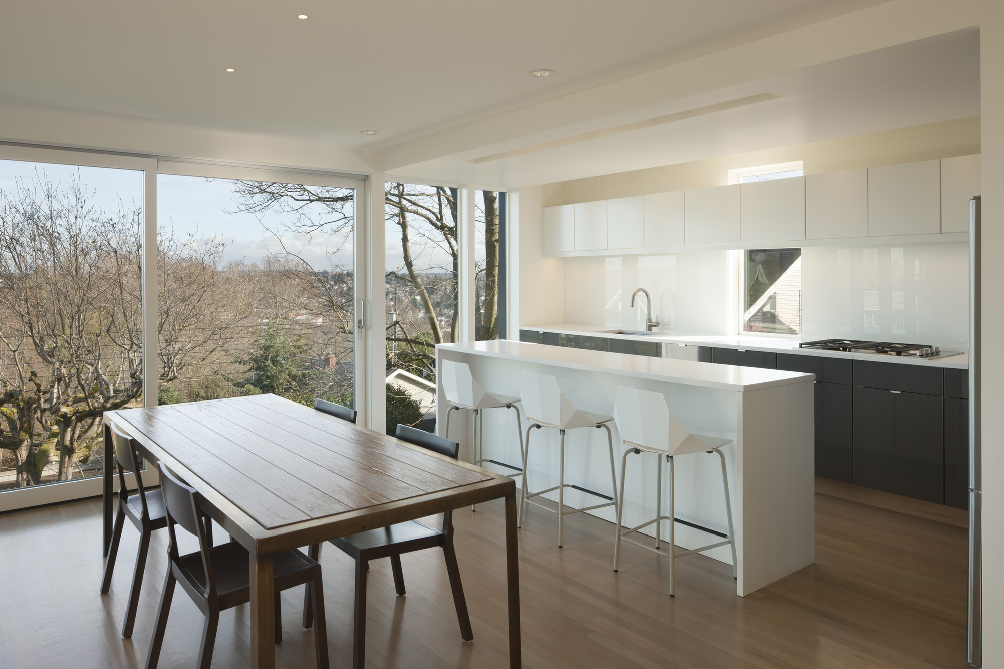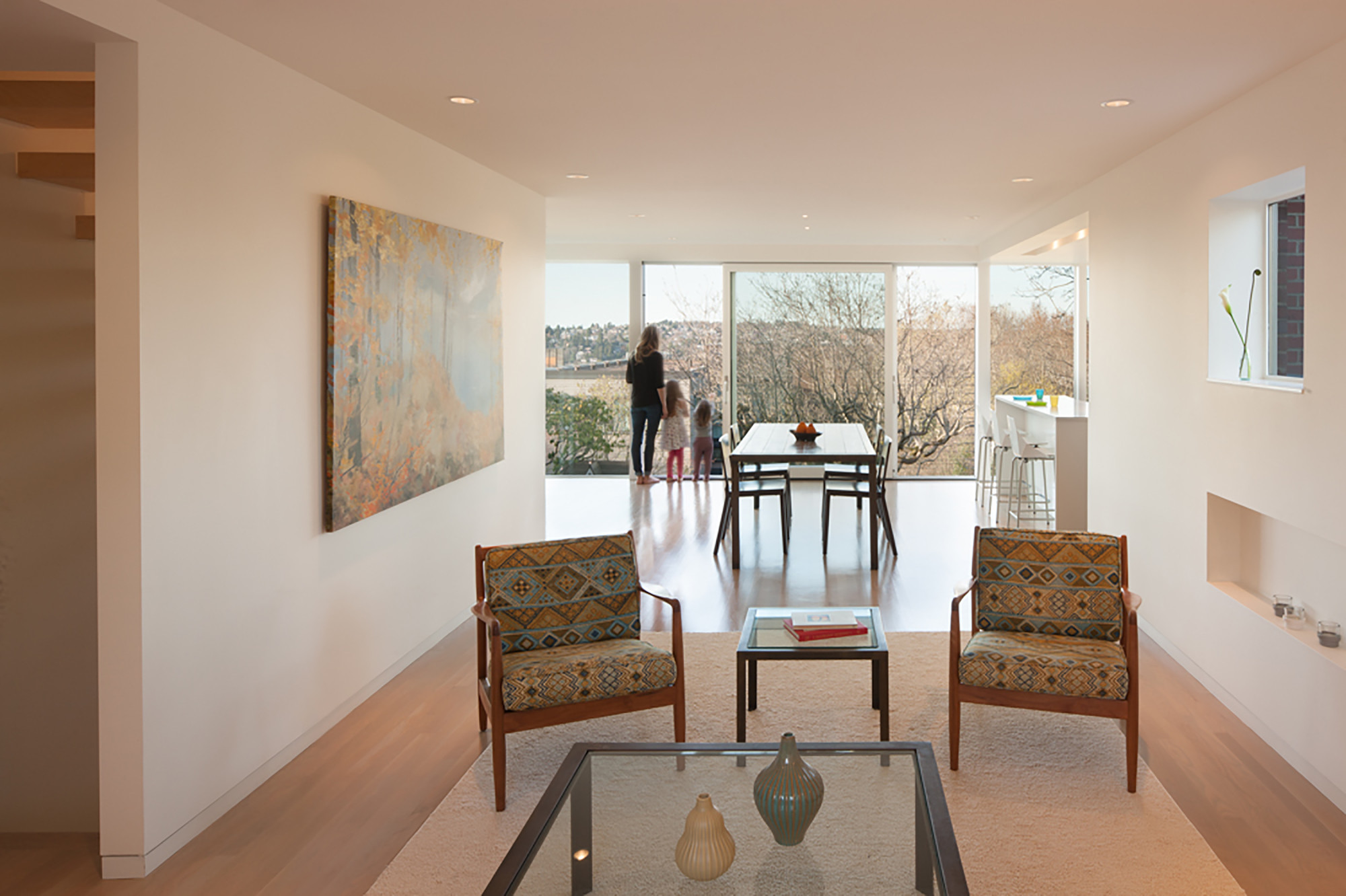 Given the clients goals for cleanly detailed spaces oriented to the northern view of the ship canal and cityscape, the rear façade of the existing house was blown open and replaced with an aperture that spans nearly the entire width of the structure.