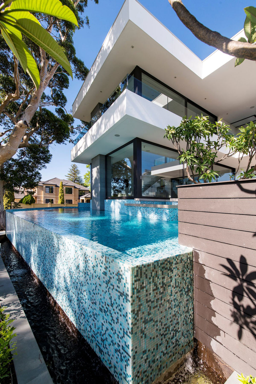 Contemporary, timeless and spread over three levels with a sparkling infinity edge pool to its elevated corner block, this home commands attention from first glimpse.